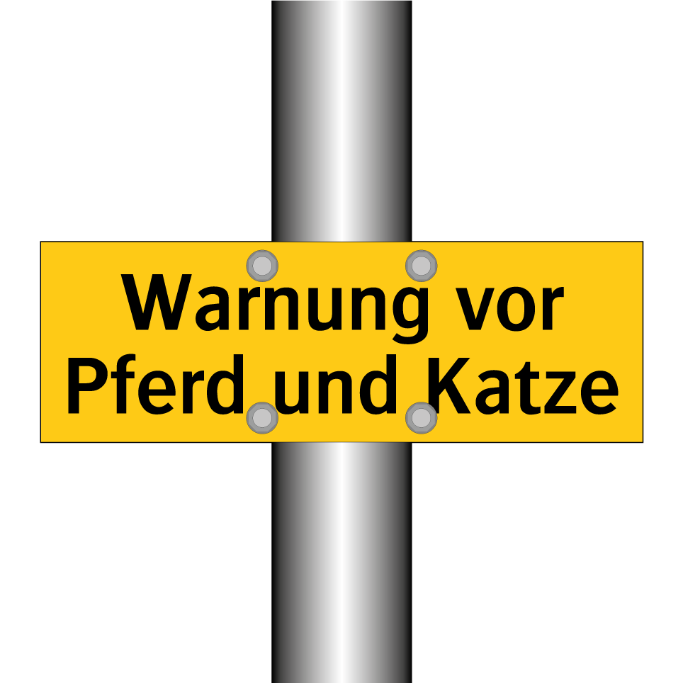Warnschild mit dem Text Warnung vor Pferd und Katze