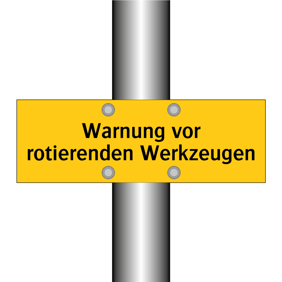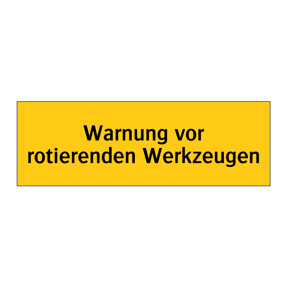 Warnschild mit dem Text Warnung vor rotierenden Werkzeugen