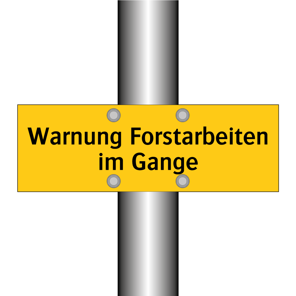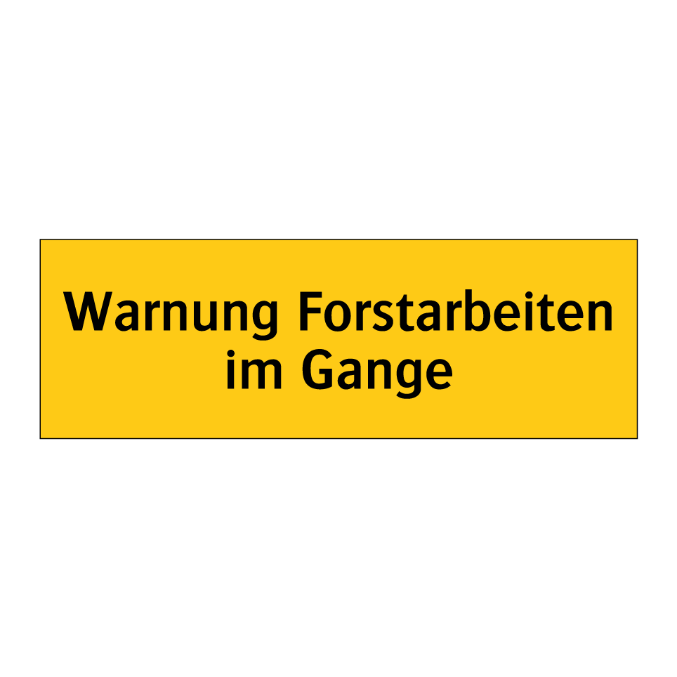 Warnschild mit dem Text Warnung Forstarbeiten im Gange