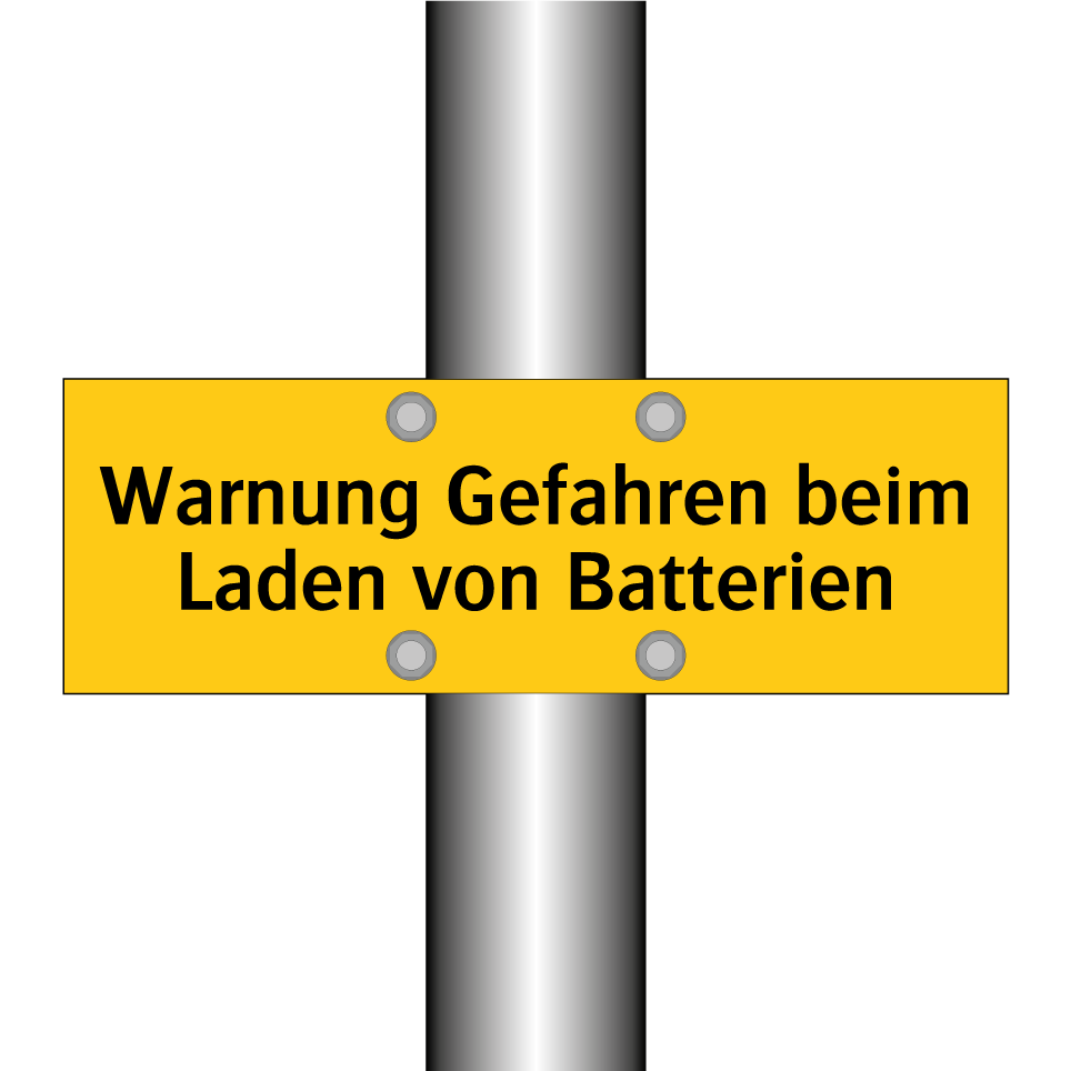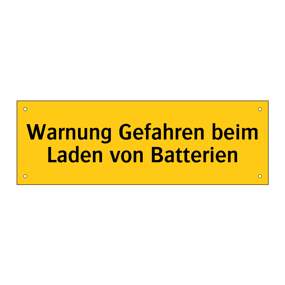 Warnschild mit dem Text Warnung Gefahren beim Laden von Batterien