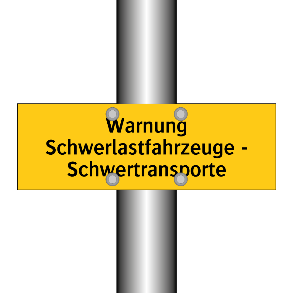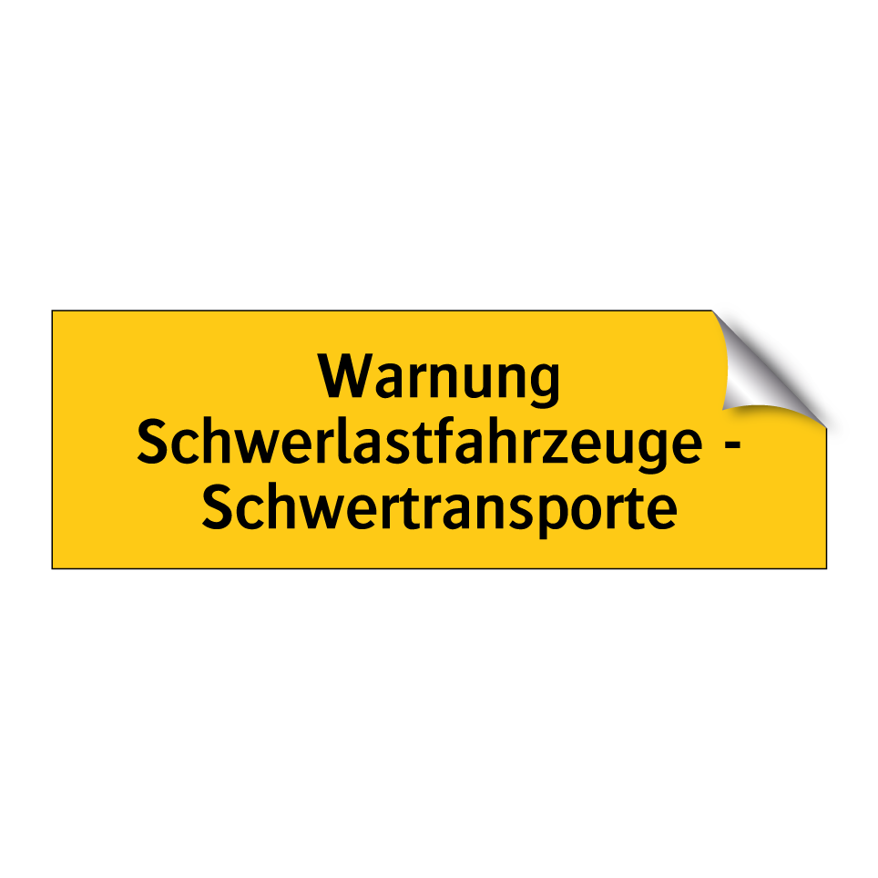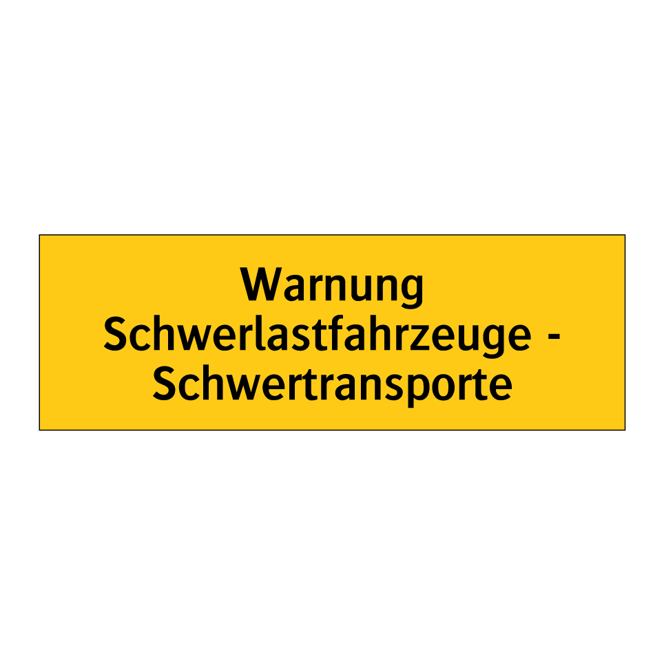 Warnschild mit dem Text Warnung Schwerlastfahrzeuge - Schwertransporte