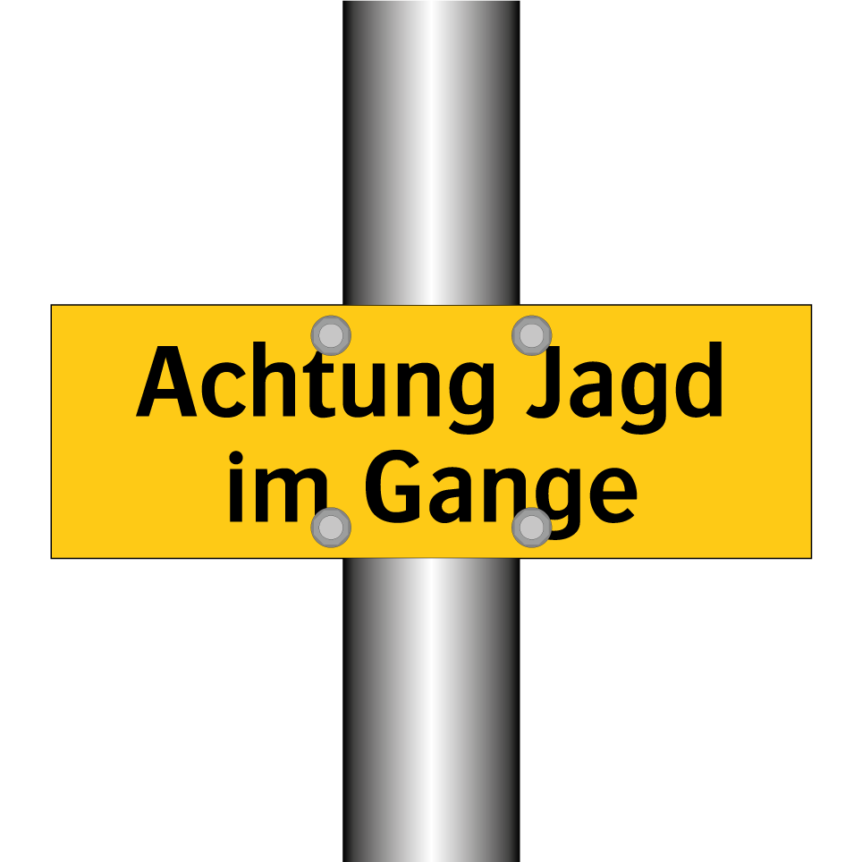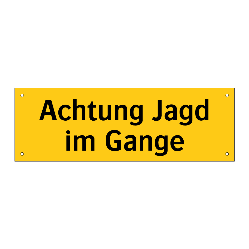 Warnschild mit dem Text Achtung Jagd im Gange
