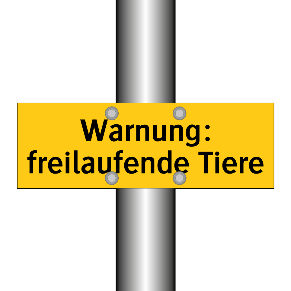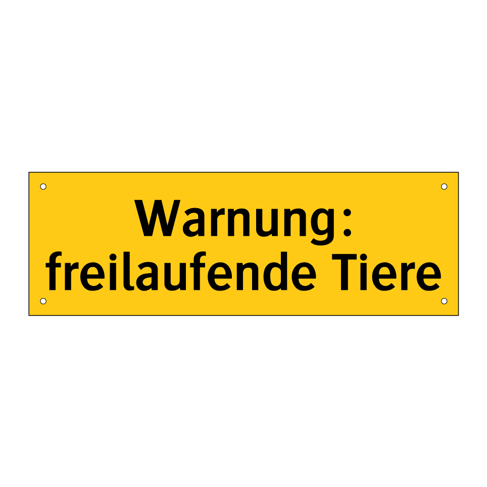 Warnschild mit dem Text Warnung: freilaufende Tiere
