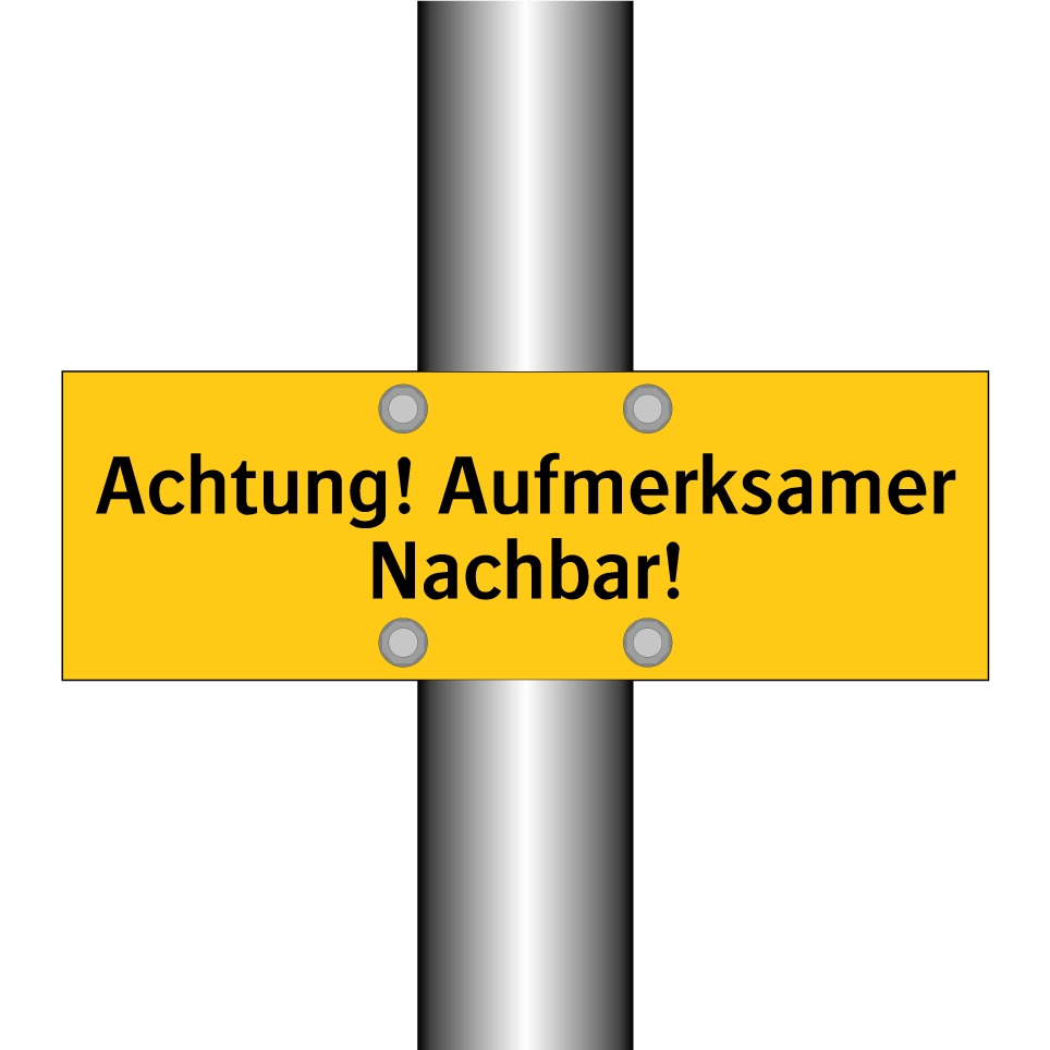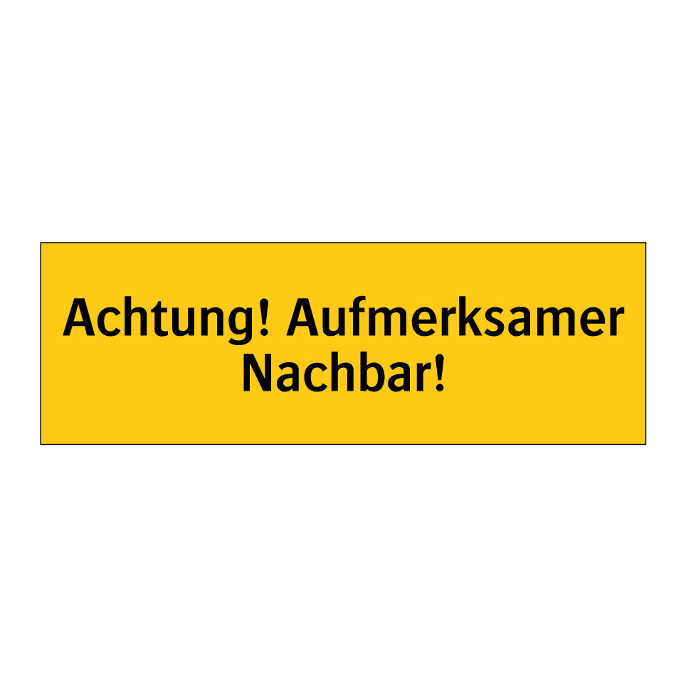 Warnschild mit dem Text Achtung! Aufmerksamer Nachbar!