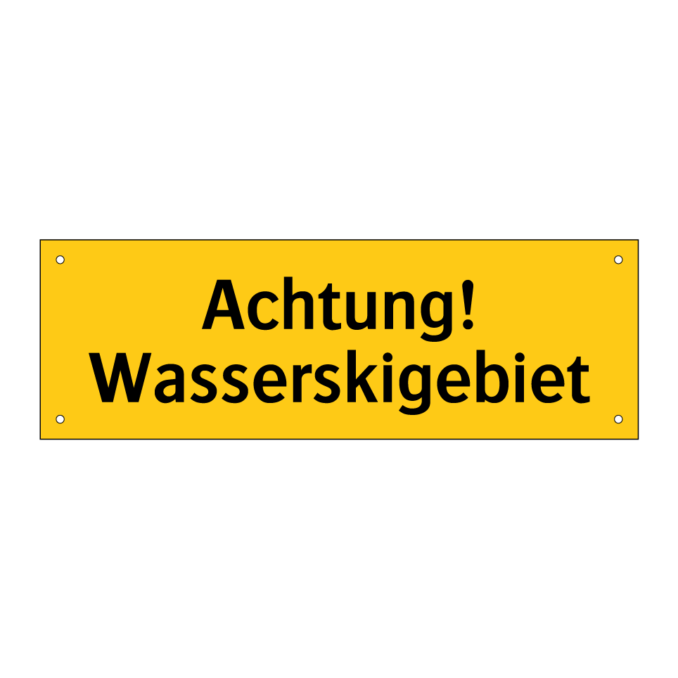 Warnschild mit dem Text Achtung! Wasserskigebiet