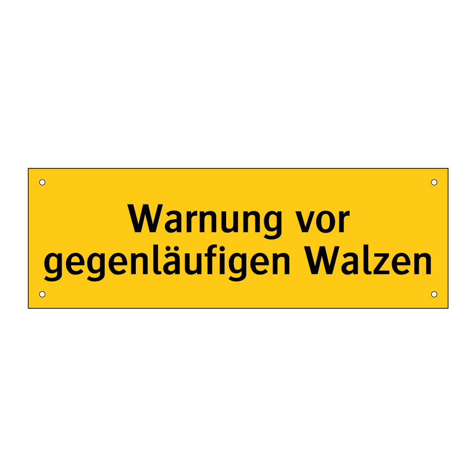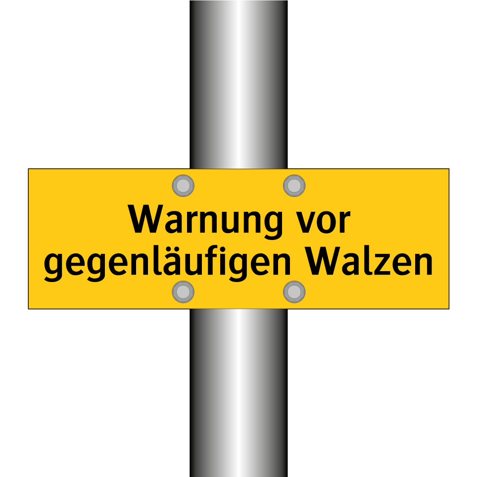 Warnschild mit dem Text Warnung vor gegenläufigen Walzen