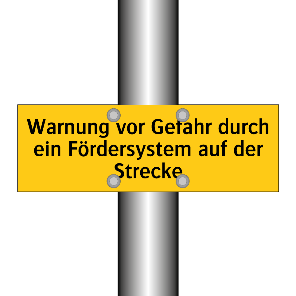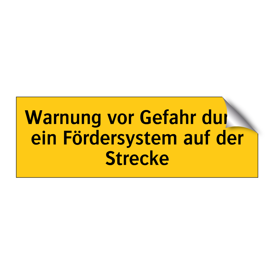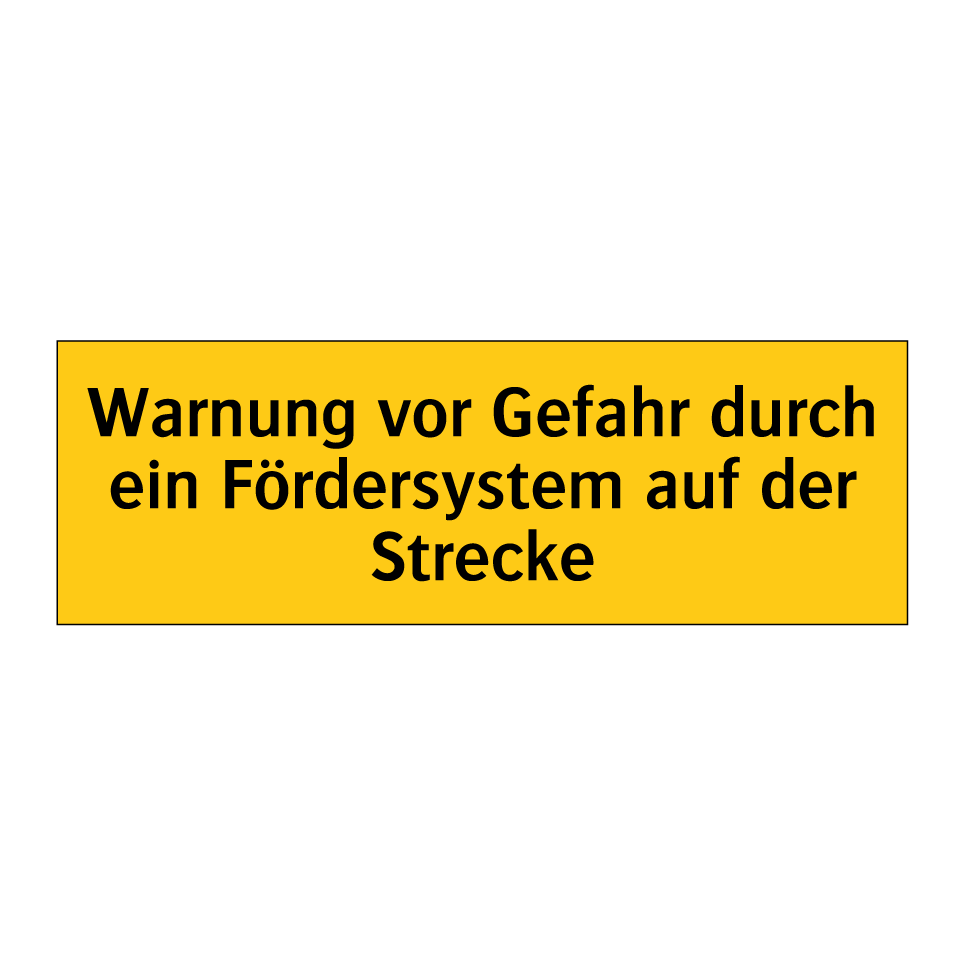 Warnschild mit dem Text Warnung vor Gefahr durch ein Fördersystem auf der Strecke
