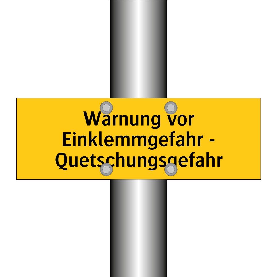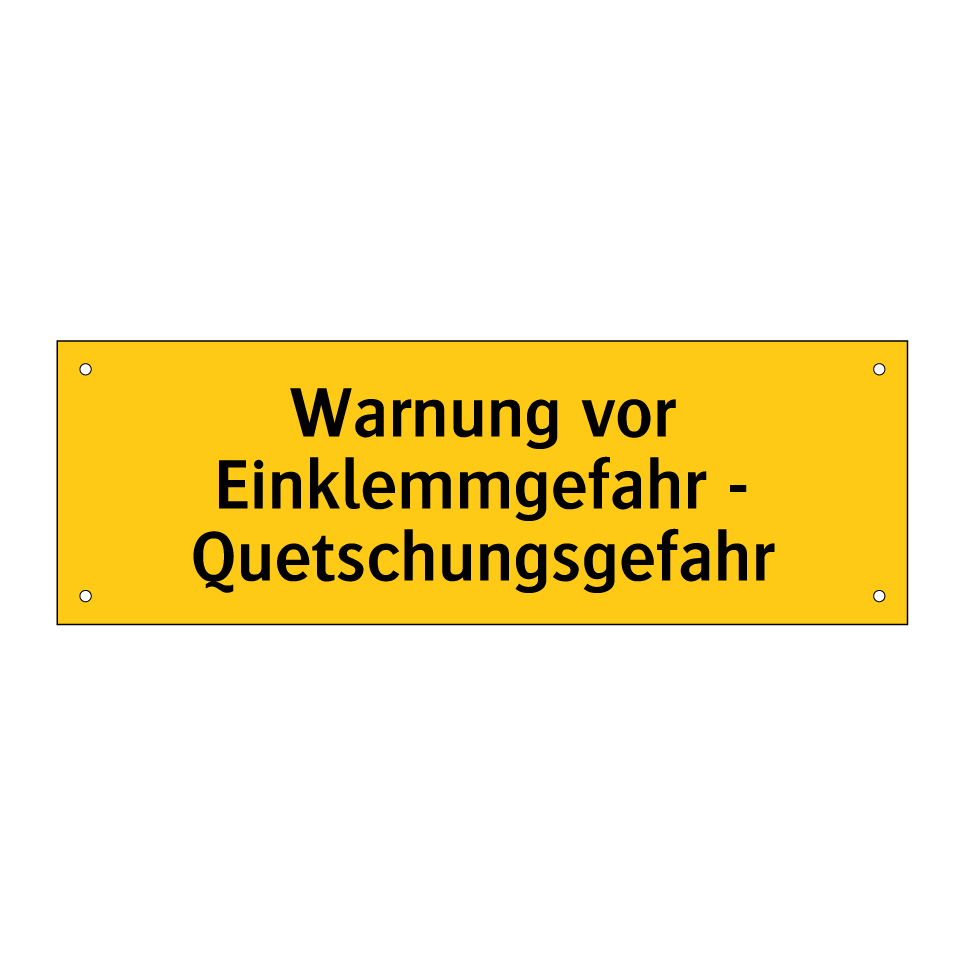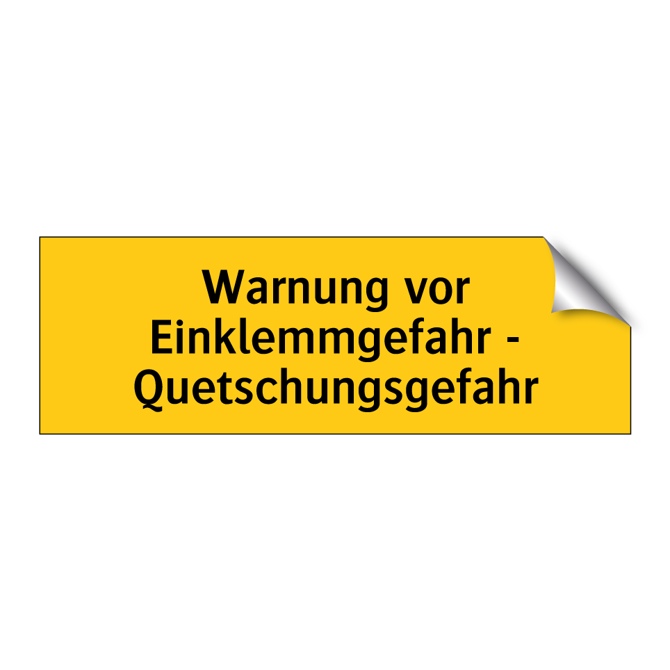 Warnschild mit dem Text Warnung vor Einklemmgefahr - Quetschungsgefahr