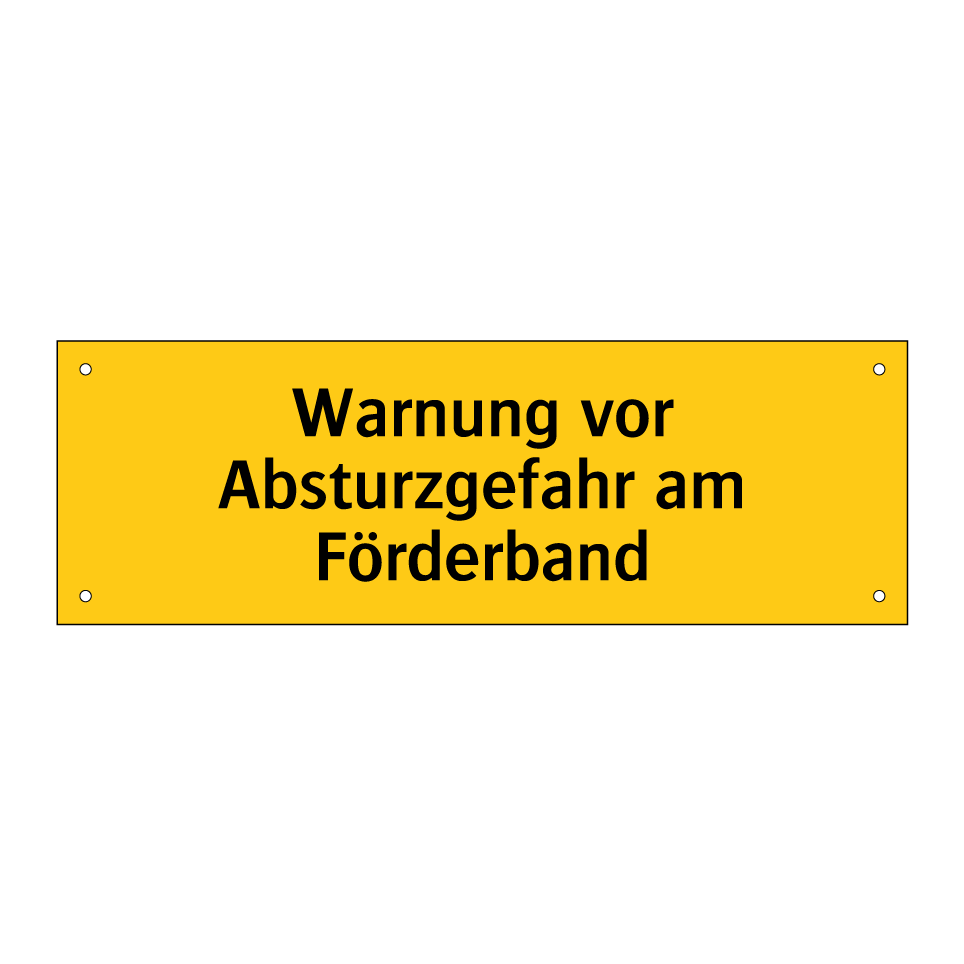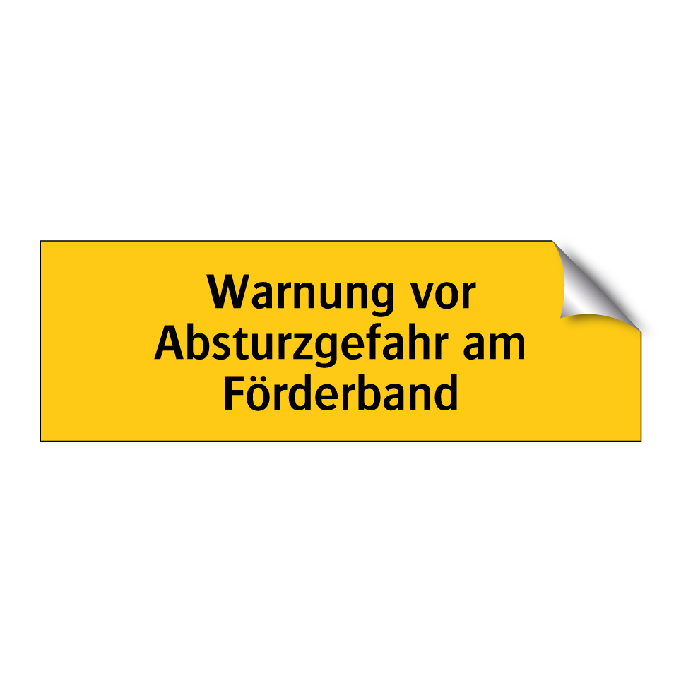 Warnschild mit dem Text Warnung vor Absturzgefahr am Förderband