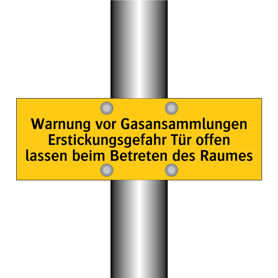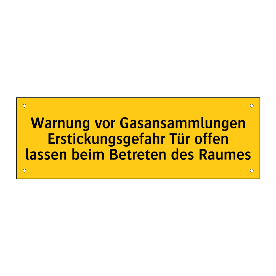 Warnschild mit dem Text Warnung vor Gasansammlungen Erstickungsgefahr Tür offen lassen beim Betreten des Raumes