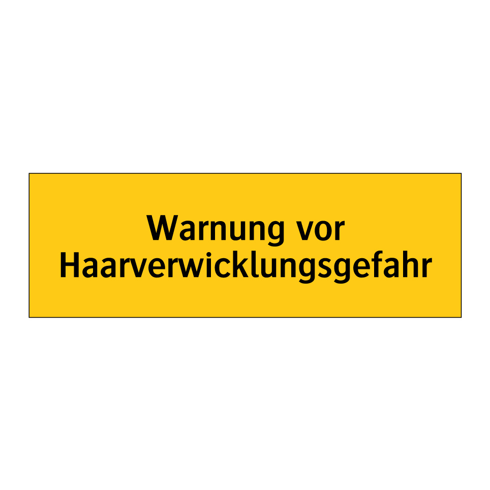 Warnschild mit dem Text Warnung vor Haarverwicklungsgefahr
