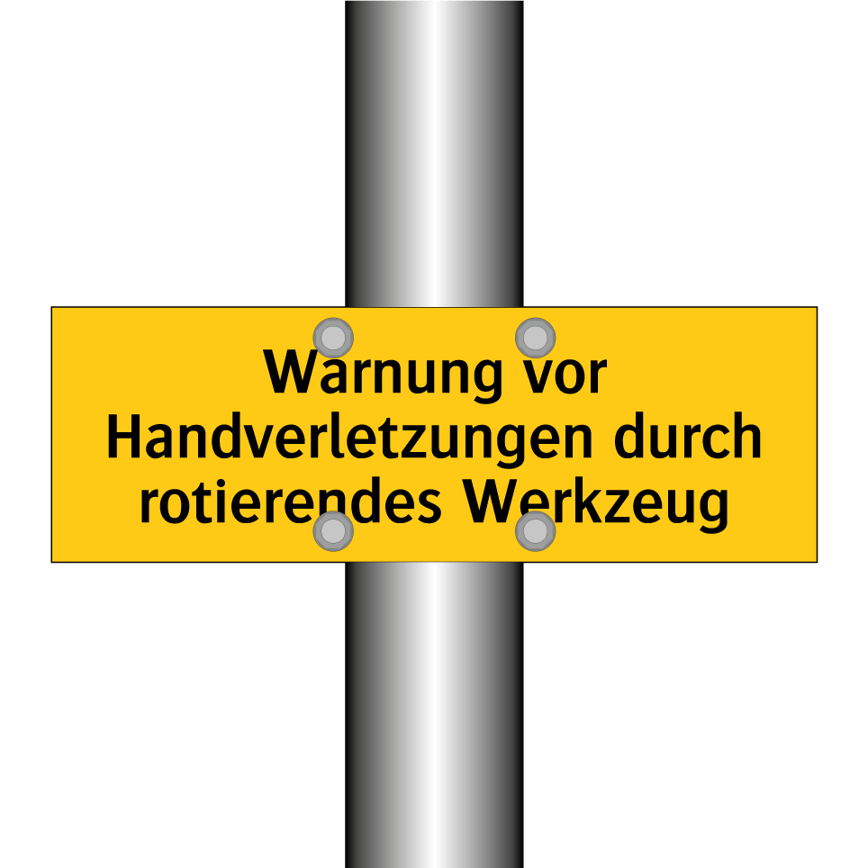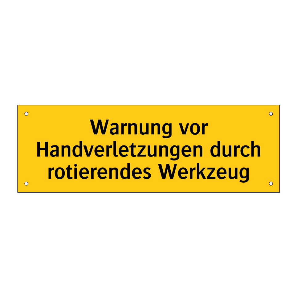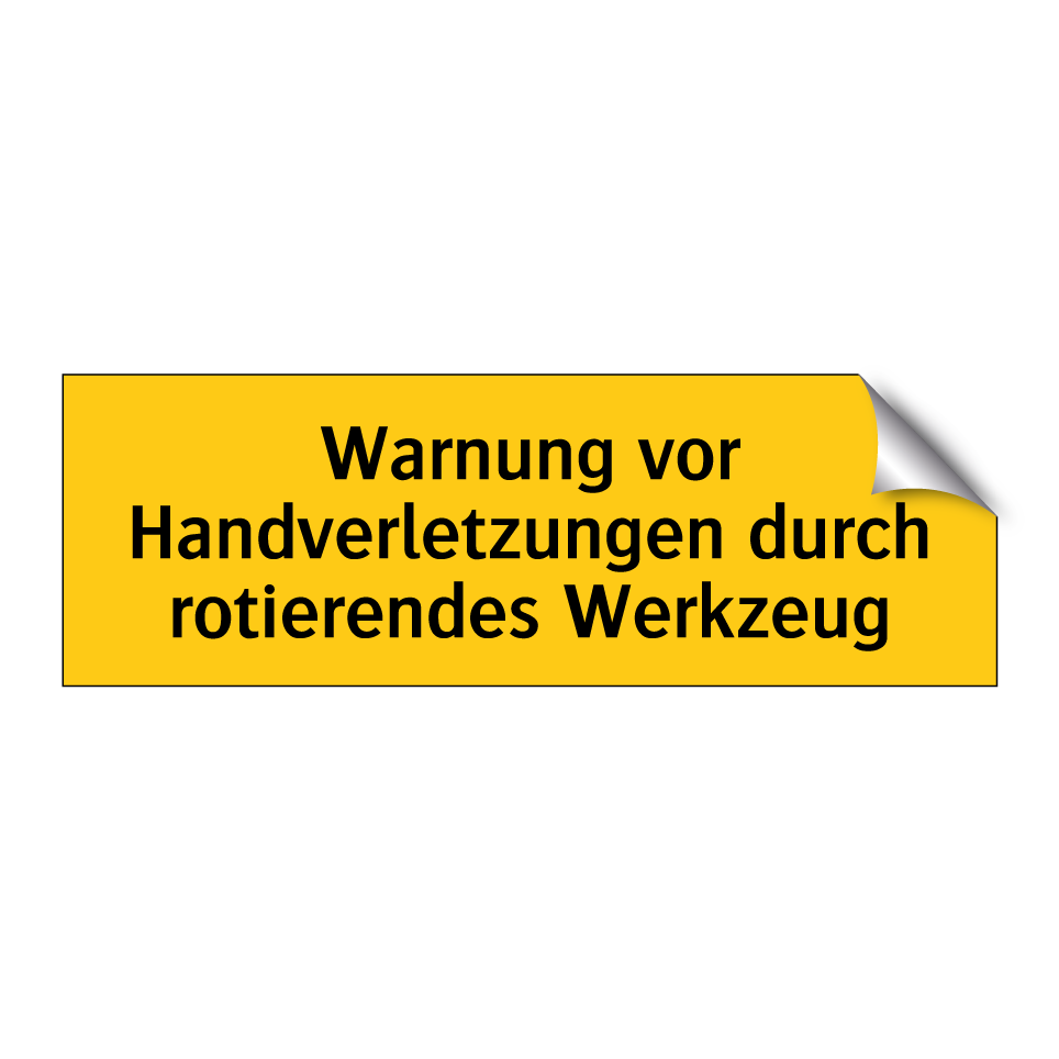 Warnschild mit dem Text Warnung vor Handverletzungen durch rotierendes Werkzeug