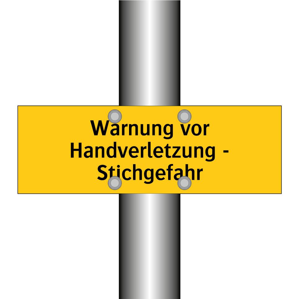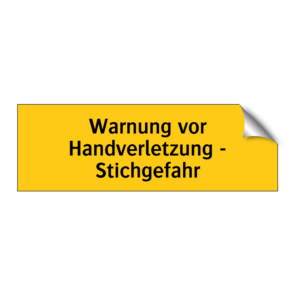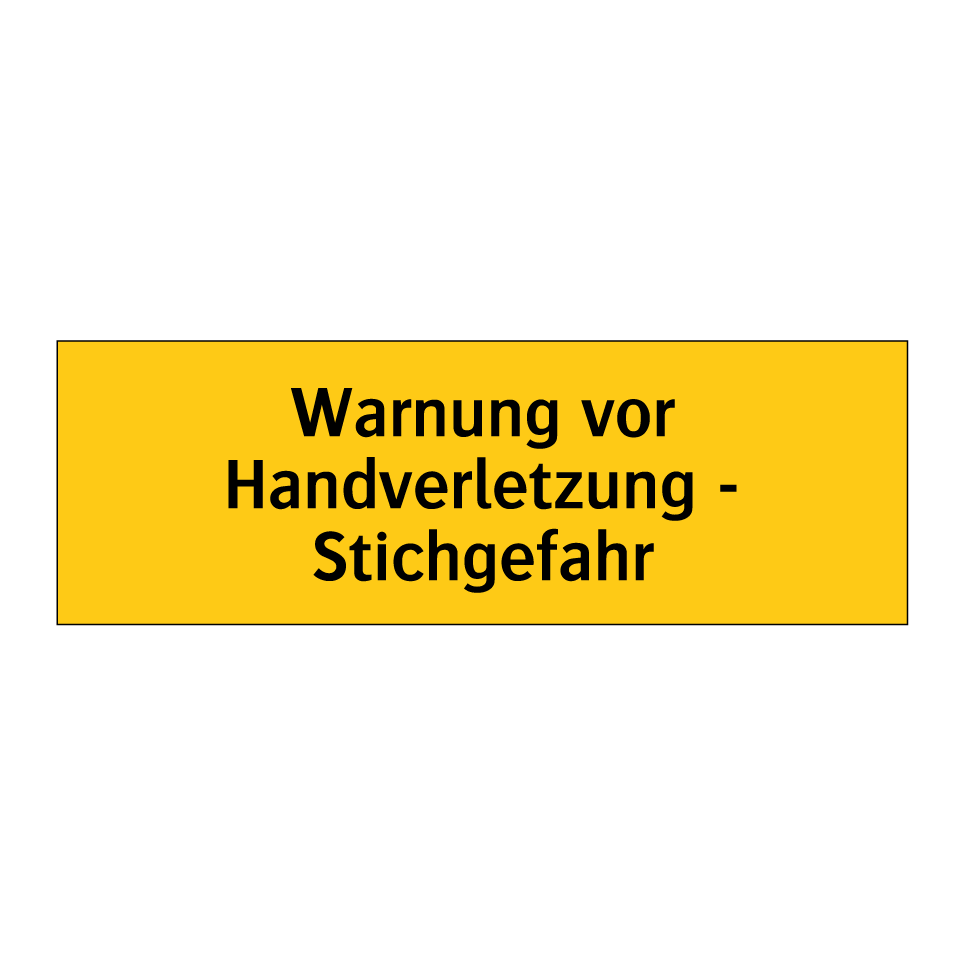Warnschild mit dem Text Warnung vor Handverletzung - Stichgefahr