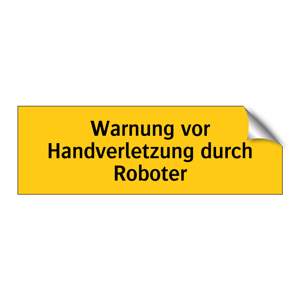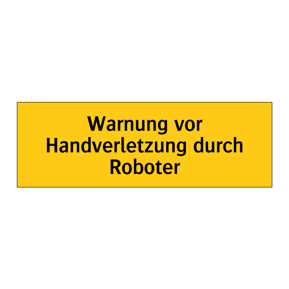 Warnschild mit dem Text Warnung vor Handverletzung durch Roboter