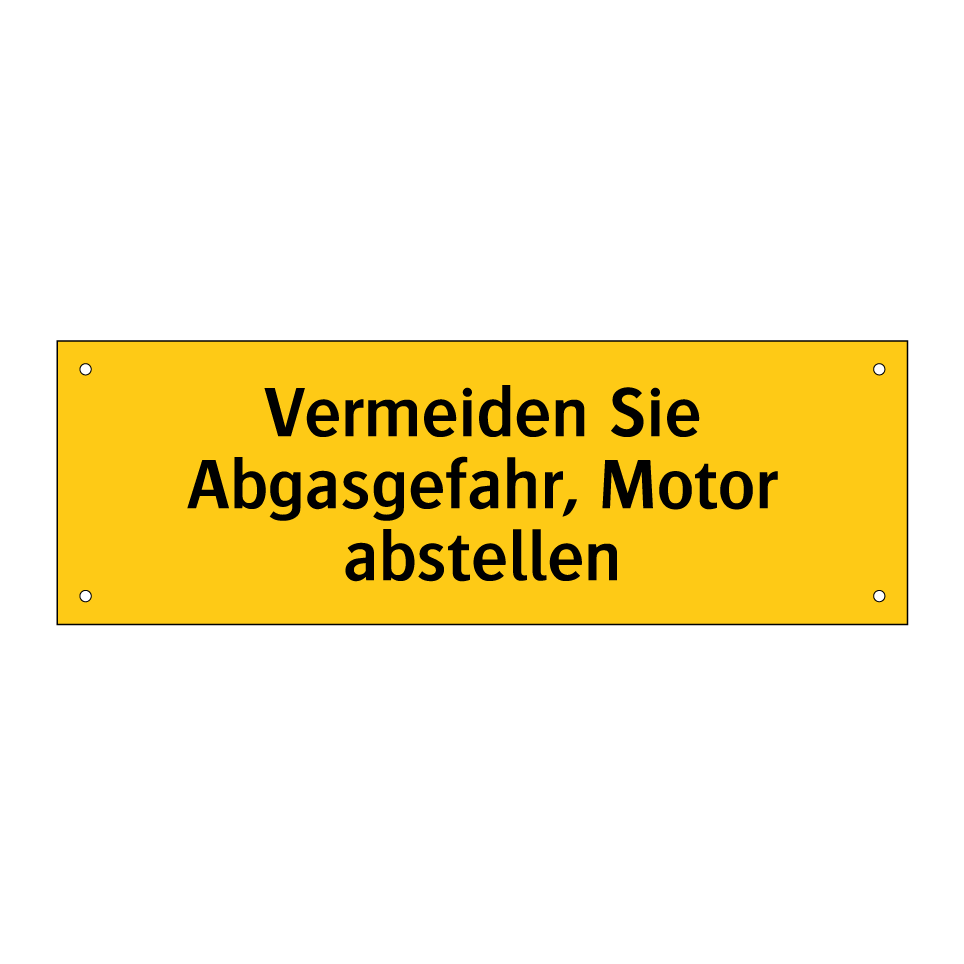 Warnschild mit dem Text Vermeiden Sie Abgasgefahr, Motor abstellen
