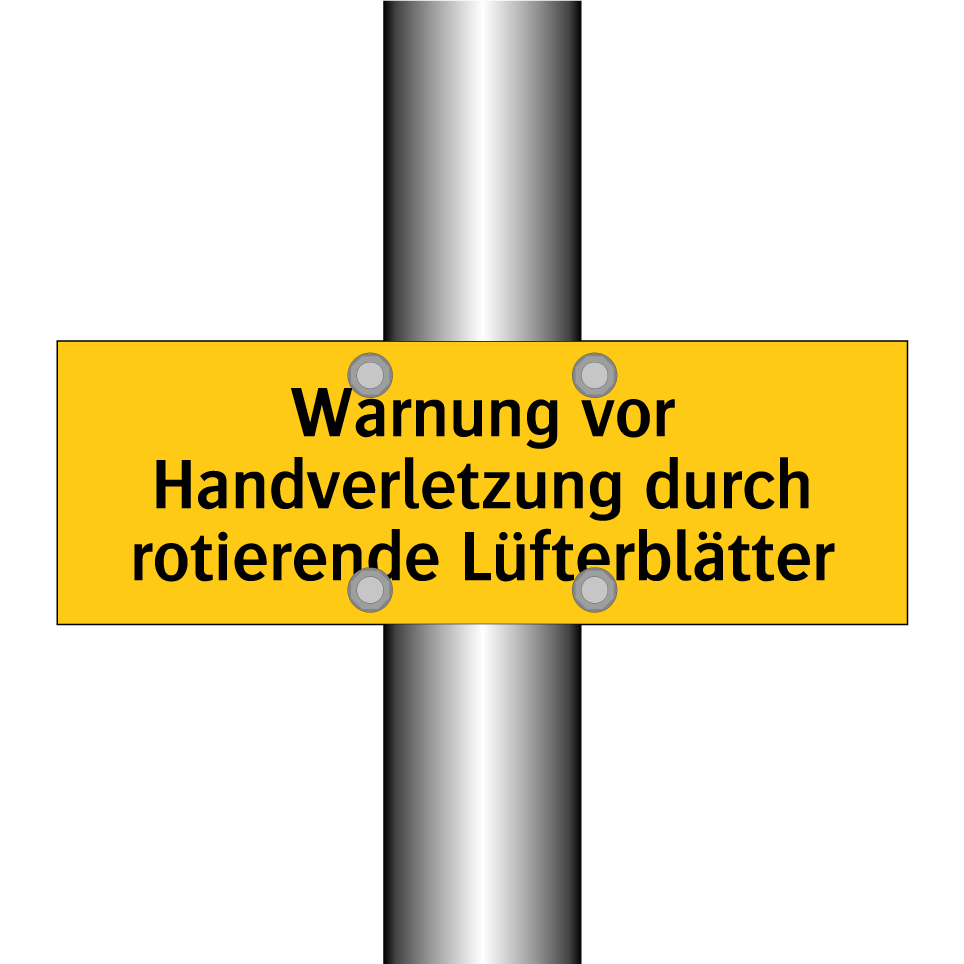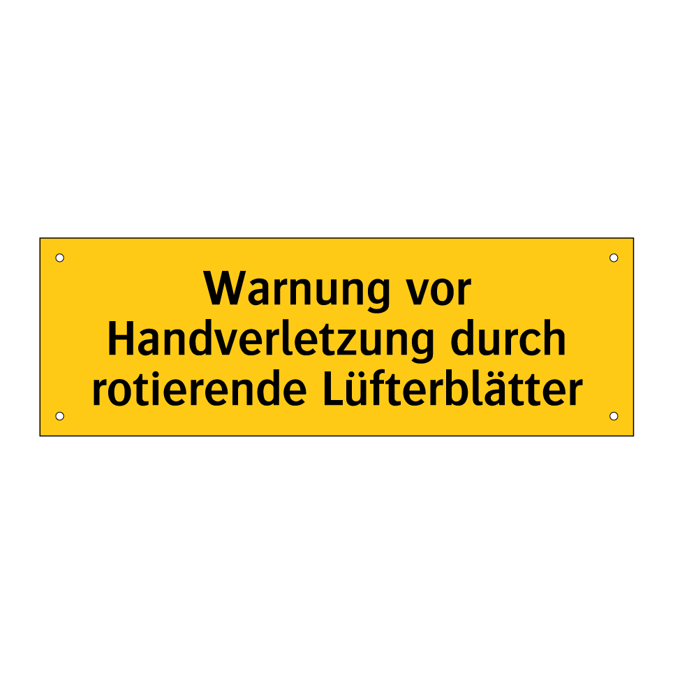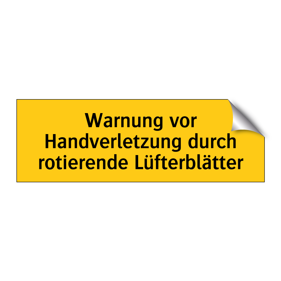 Warnschild mit dem Text Warnung vor Handverletzung durch rotierende Lüfterblätter