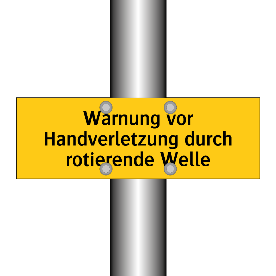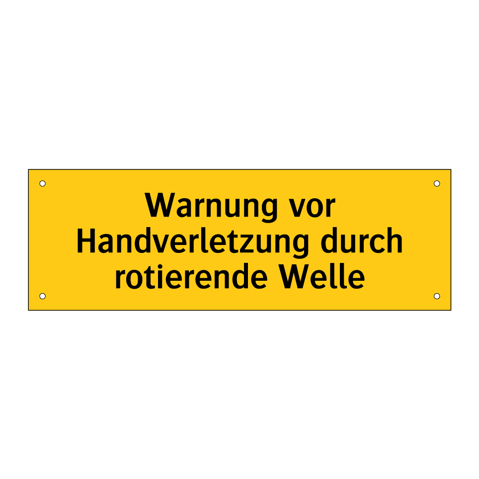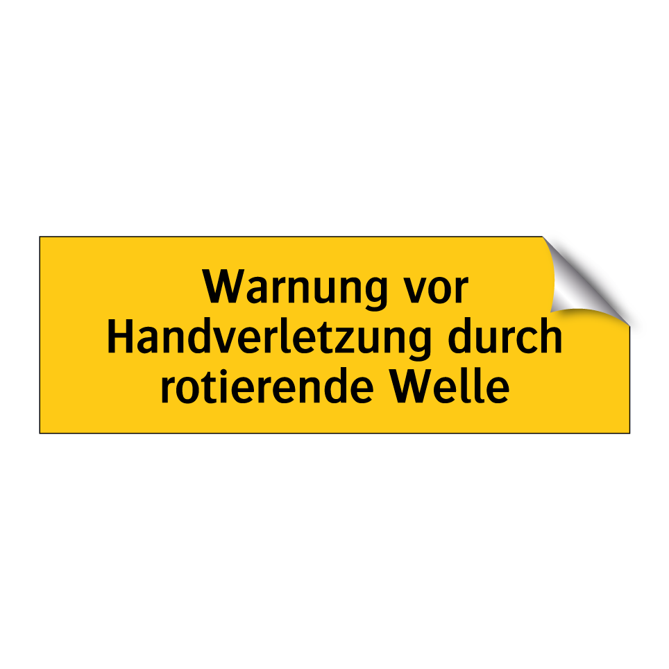 Warnschild mit dem Text Warnung vor Handverletzung durch rotierende Welle