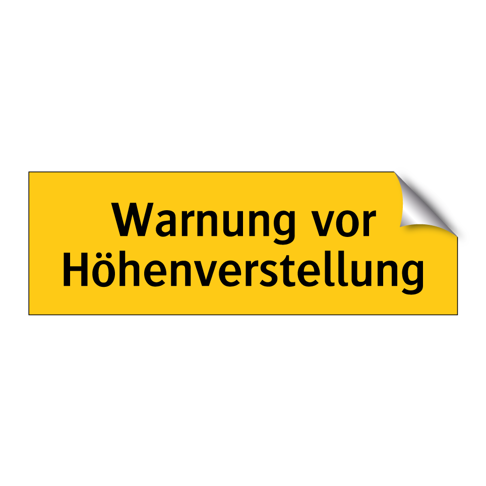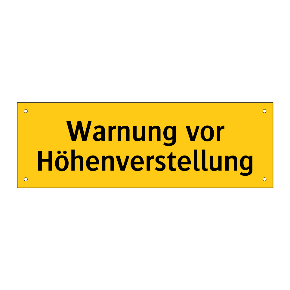 Warnschild mit dem Text Warnung vor Höhenverstellung