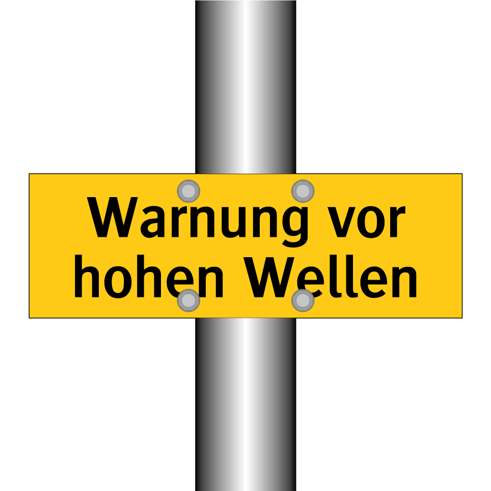 Warnschild mit dem Text Warnung vor hohen Wellen