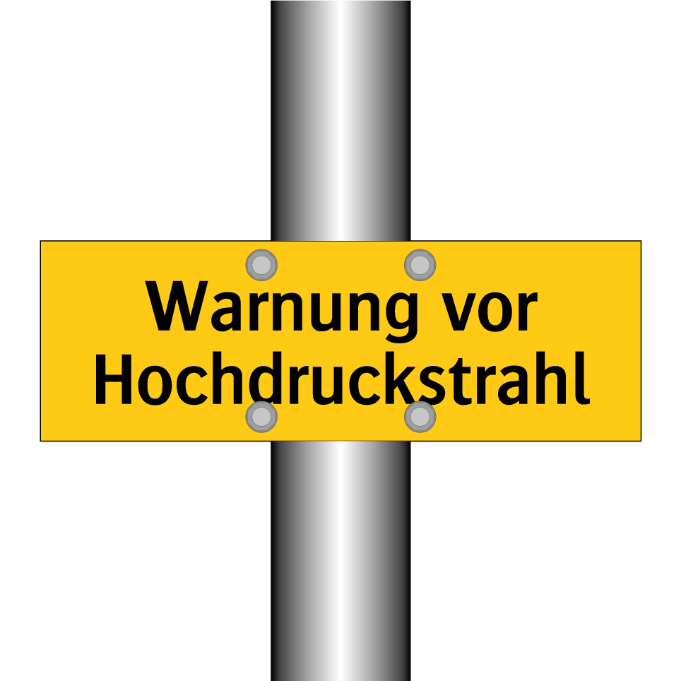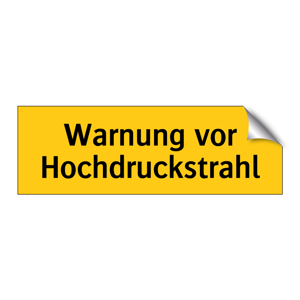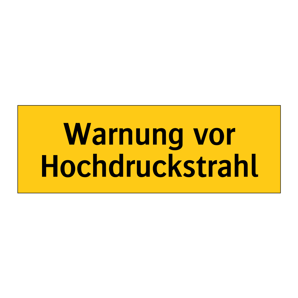 Warnschild mit dem Text Warnung vor Hochdruckstrahl