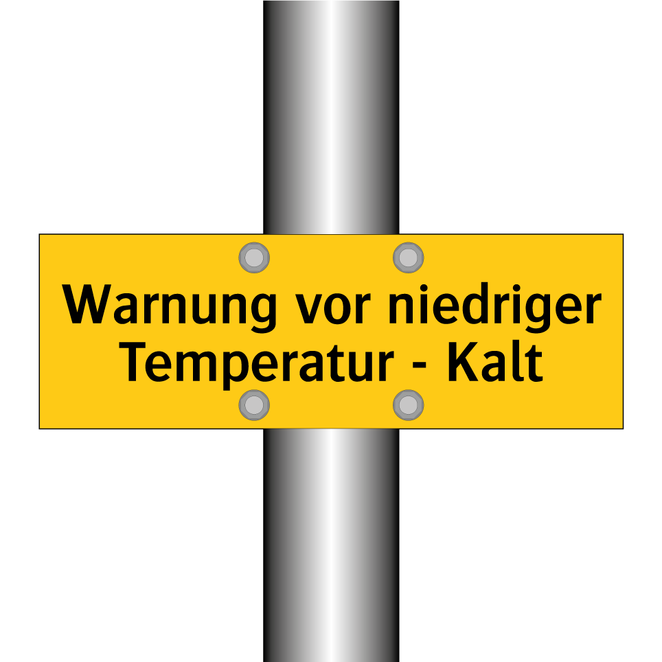 Warnschild mit dem Text Warnung vor niedriger Temperatur - Kalt