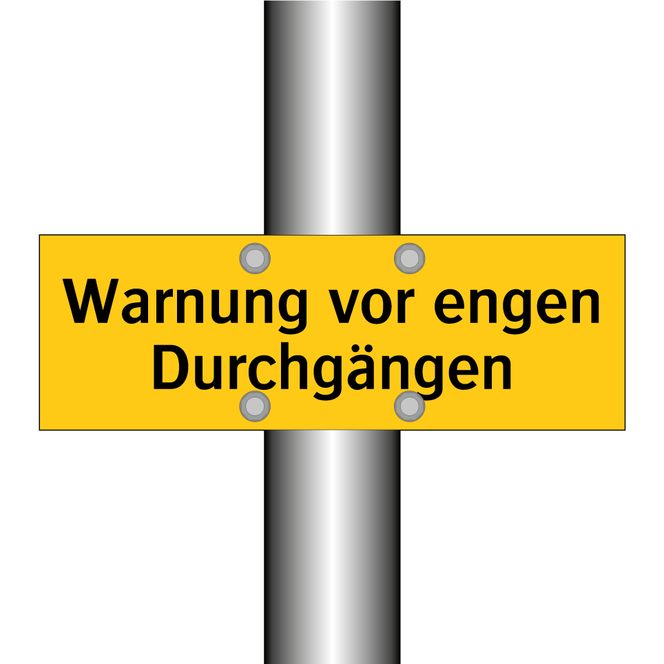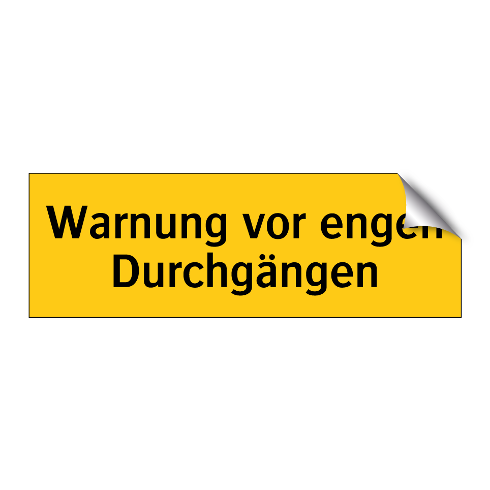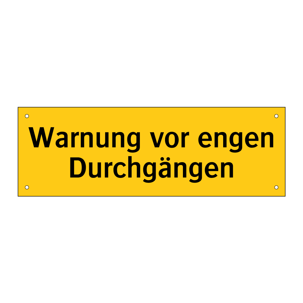 Warnschild mit dem Text Warnung vor engen Durchgängen