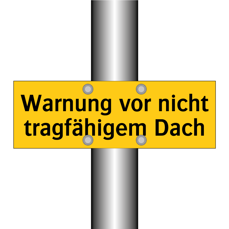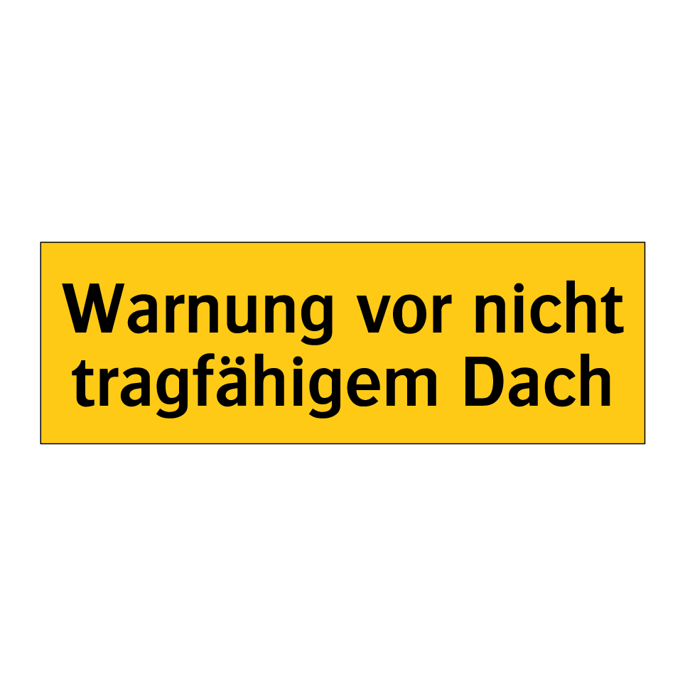 Warnschild mit dem Text Warnung vor nicht tragfähigem Dach