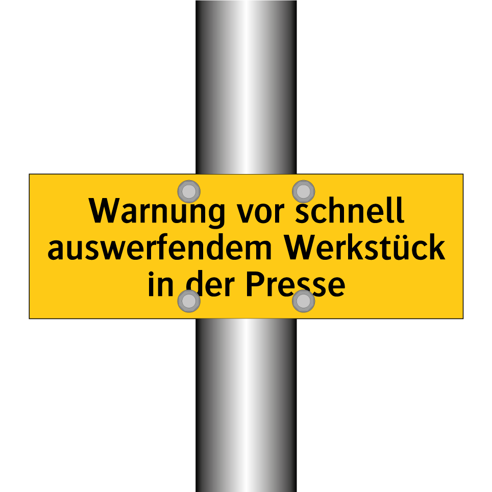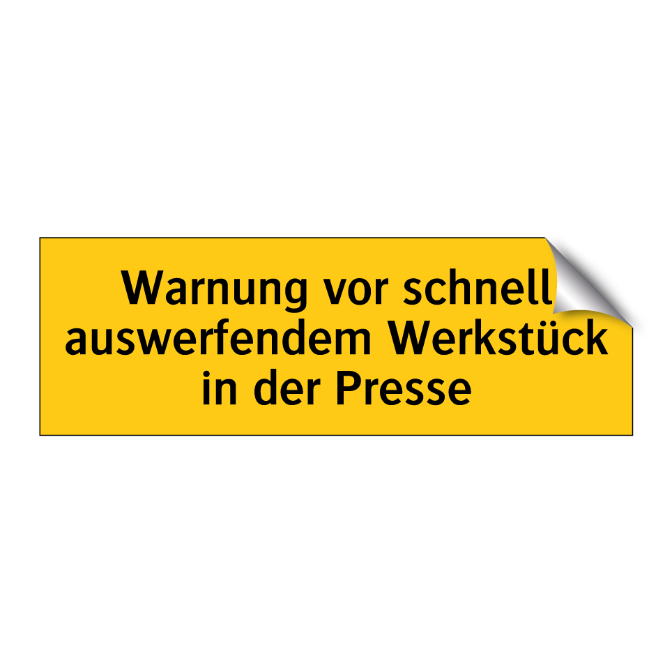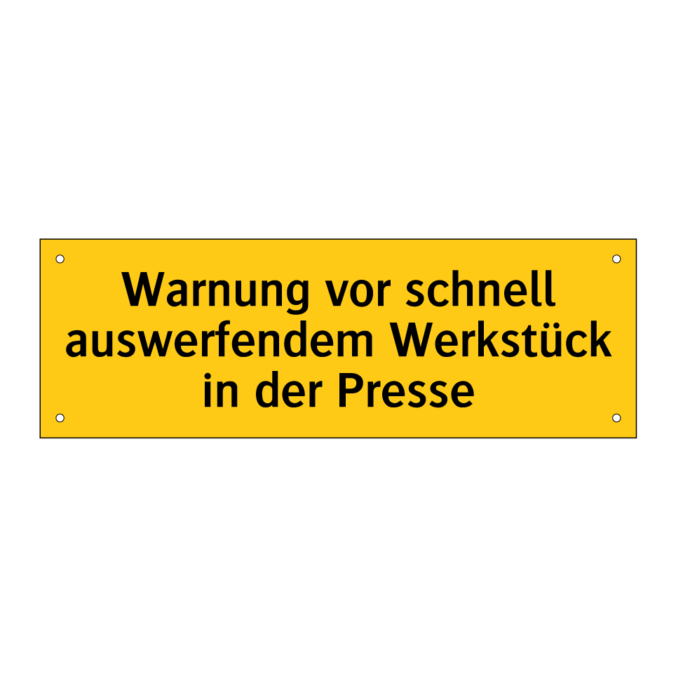 Warnschild mit dem Text Warnung vor schnell auswerfendem Werkstück in der Presse