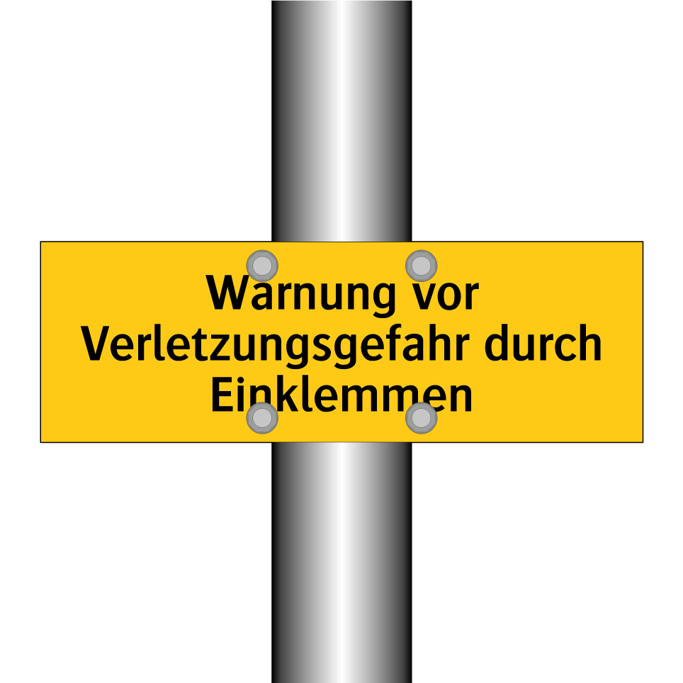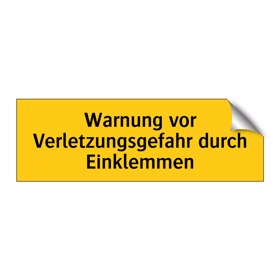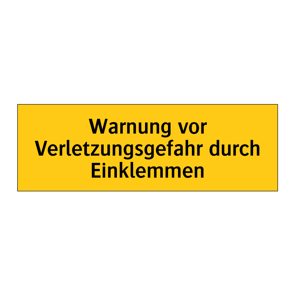 Warnschild mit dem Text Warnung vor Verletzungsgefahr durch Einklemmen