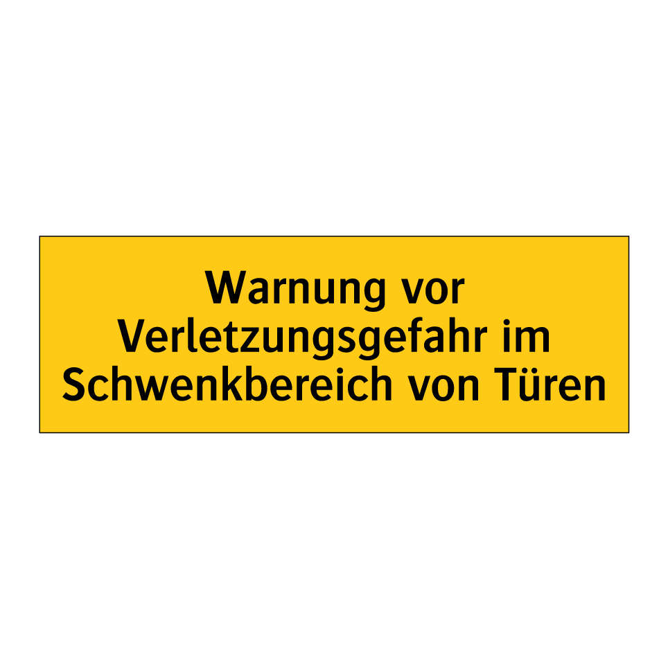 Warnschild mit dem Text Warnung vor Verletzungsgefahr im Schwenkbereich von Türen