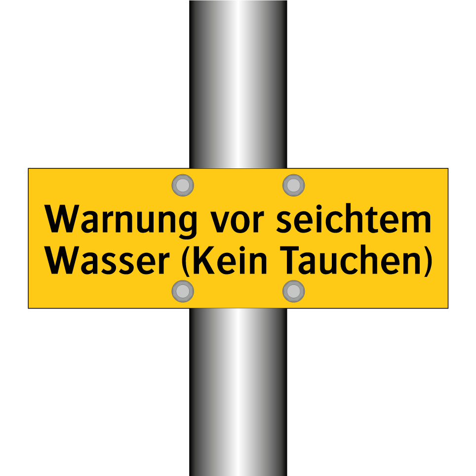 Warnschild mit dem Text Warnung vor seichtem Wasser (Kein Tauchen)