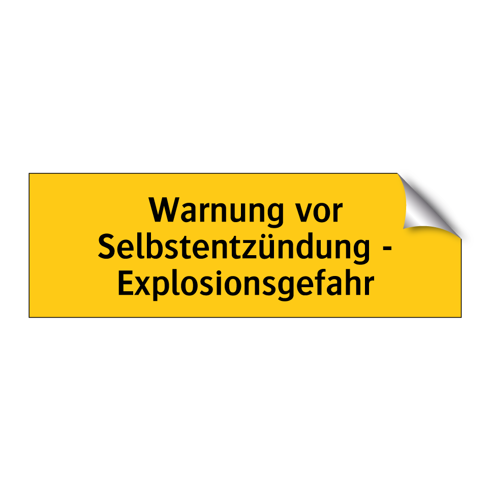 Warnschild mit dem Text Warnung vor Selbstentzündung - Explosionsgefahr