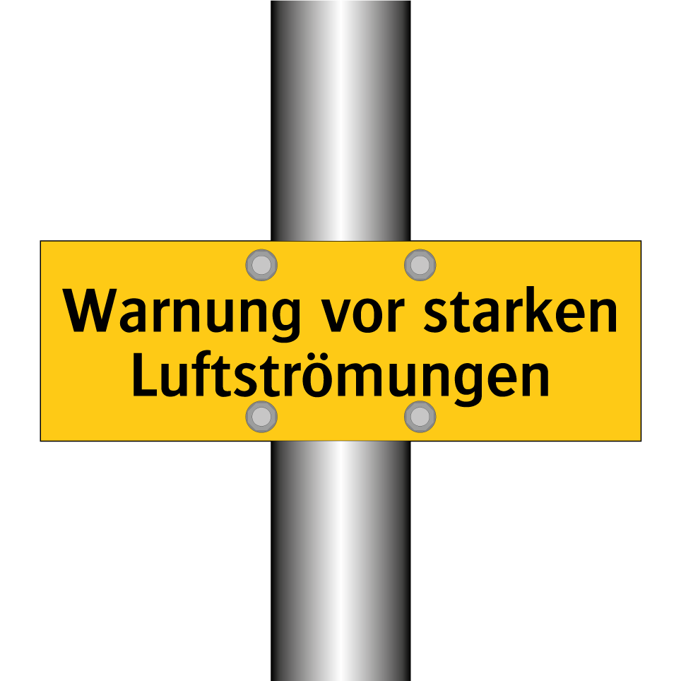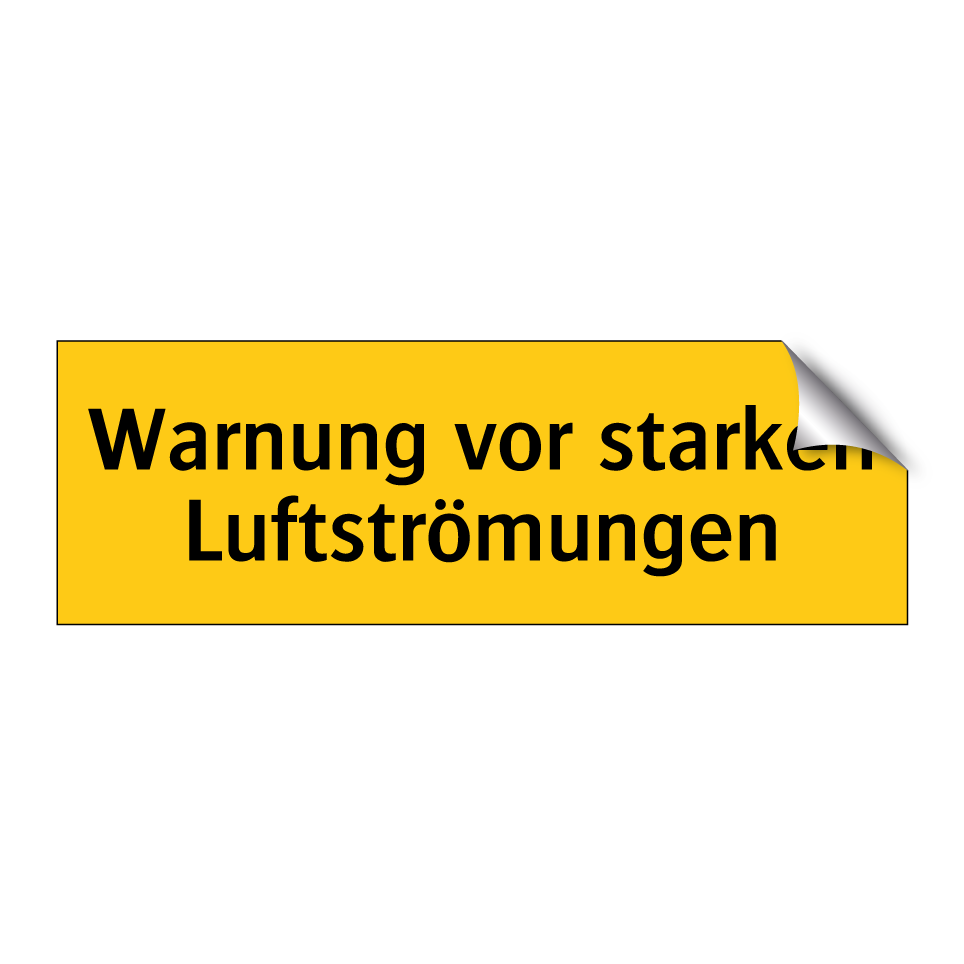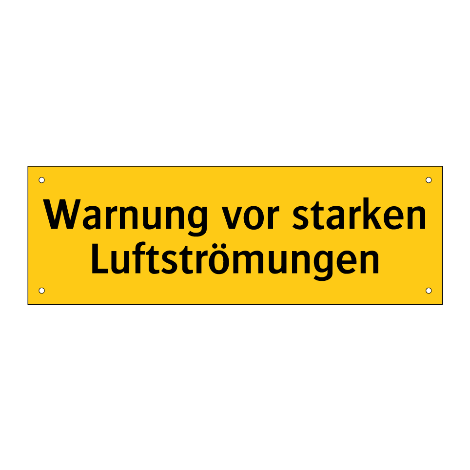 Warnschild mit dem Text Warnung vor starken Luftströmungen