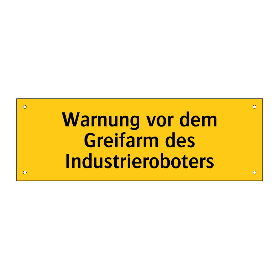 Diese Warnschild ist ein unverzichtbares Element in jeder industriellen Umgebung, in der Roboterarme im Einsatz sind. Es dient dazu, Mitarbeiter und Besucher auf die potenziellen Gefahren hinzuweisen, die von den Bewegungen eines Industrieroboters ausgehen können. Die auffällige gelbe Hintergrundfarbe und die schwarze Schrift sorgen dafür, dass die Warnung sofort ins Auge fällt. Ideal platziert in Produktionshallen, Fertigungsstraßen oder in der Nähe von automatisierten Arbeitsstationen, trägt dieses Warnschild zur Sicherheit bei, indem es das Bewusstsein für mögliche Risiken schärft. Es ist ein wichtiger Bestandteil der Sicherheitsmaßnahmen in jeder modernen Fabrik oder Werkstatt.