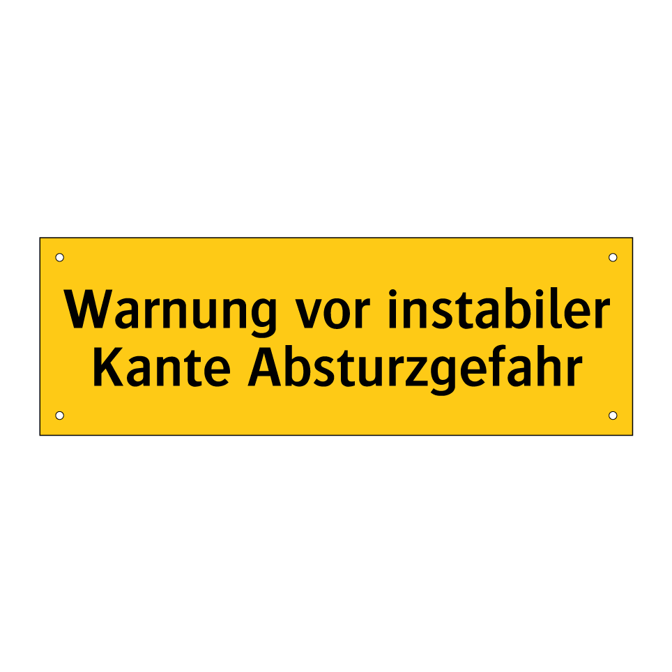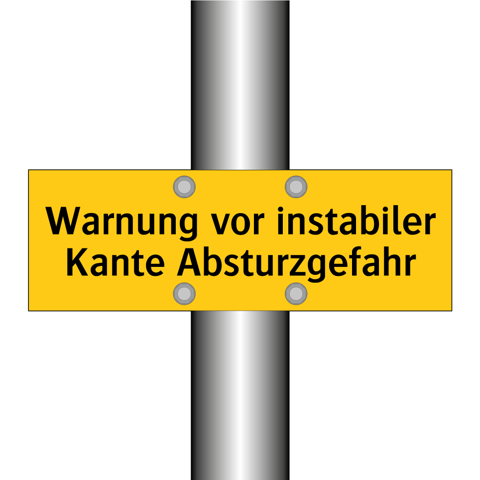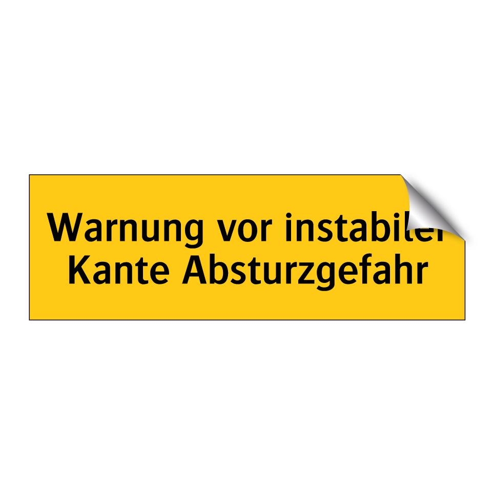 Warnschild mit dem Text Warnung vor instabiler Kante Absturzgefahr