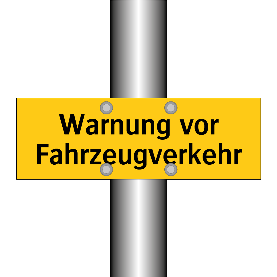 Warnschild mit dem Text Warnung vor Fahrzeugverkehr
