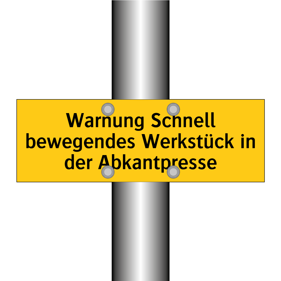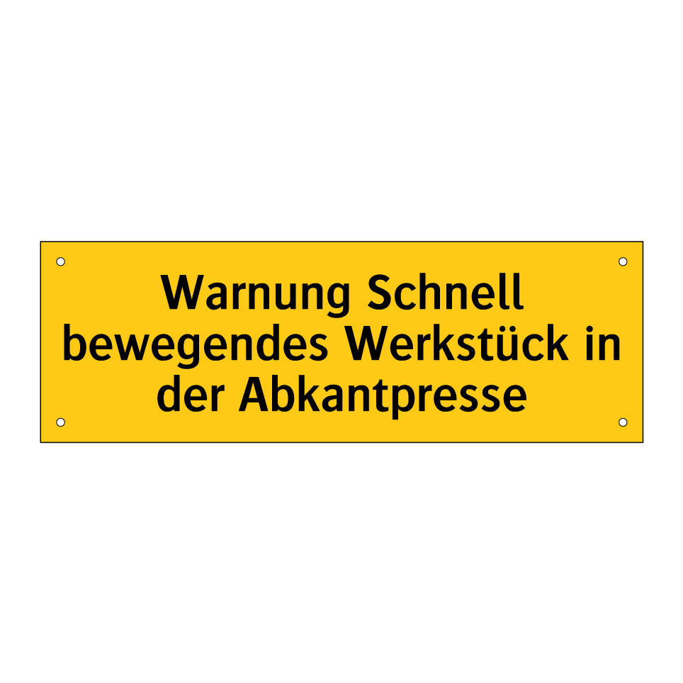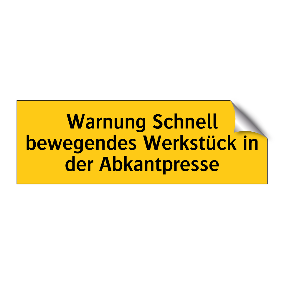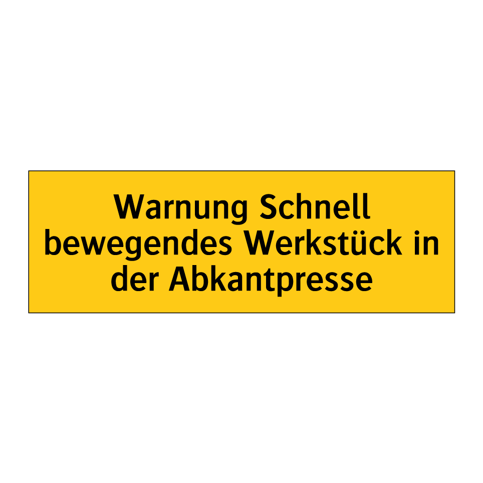 Warnschild mit dem Text Warnung Schnell bewegendes Werkstück in der Abkantpresse