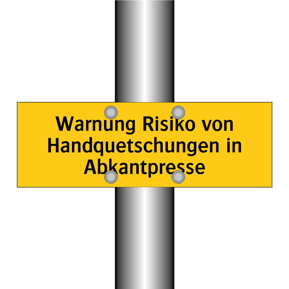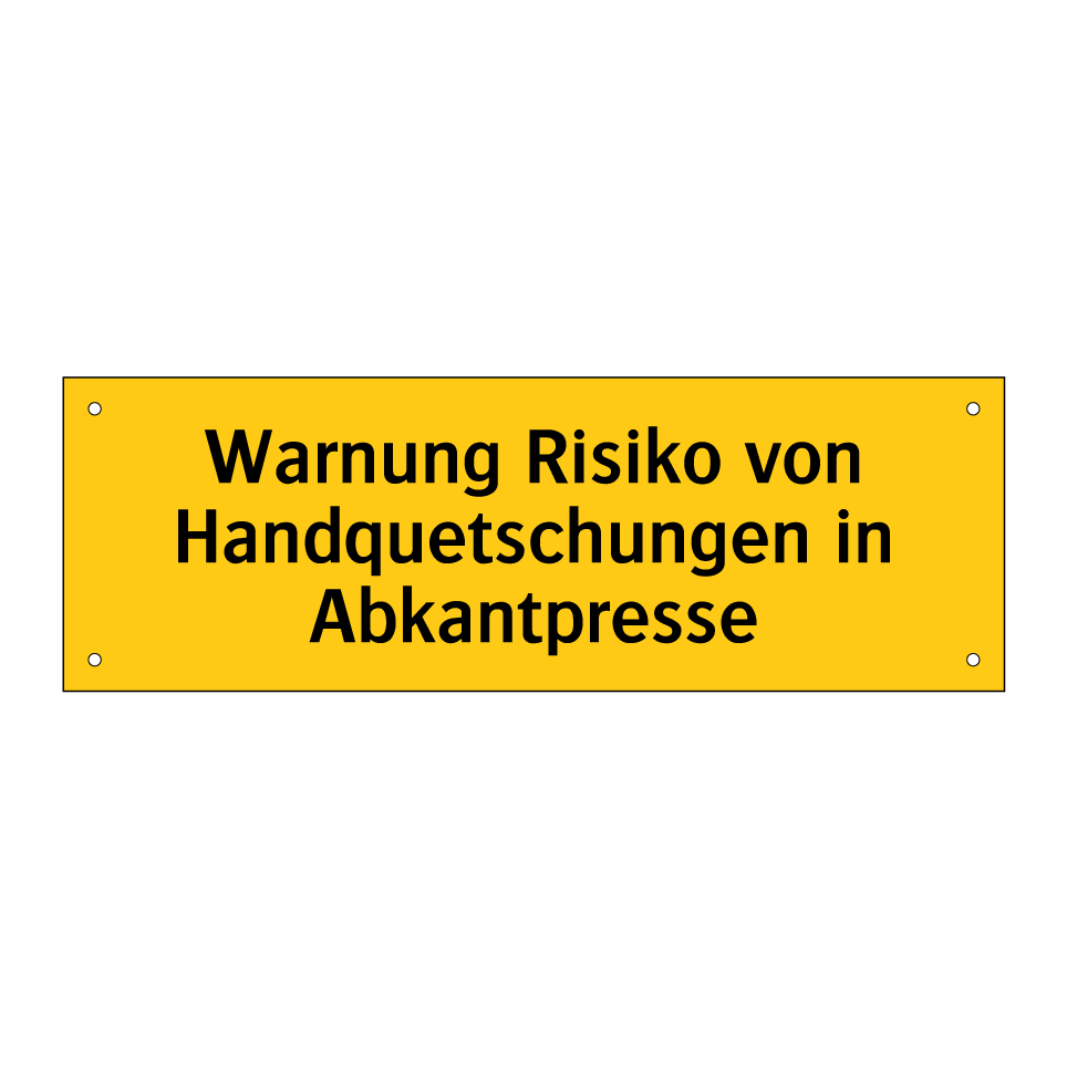 Warnschild mit dem Text Warnung Risiko von Handquetschungen in Abkantpresse