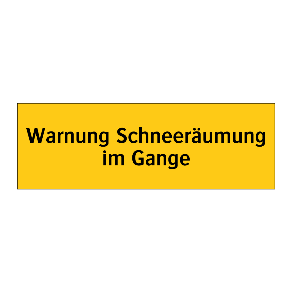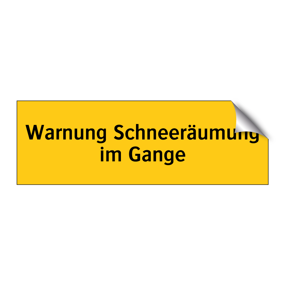 Warnschild mit dem Text Warnung Schneeräumung im Gange
