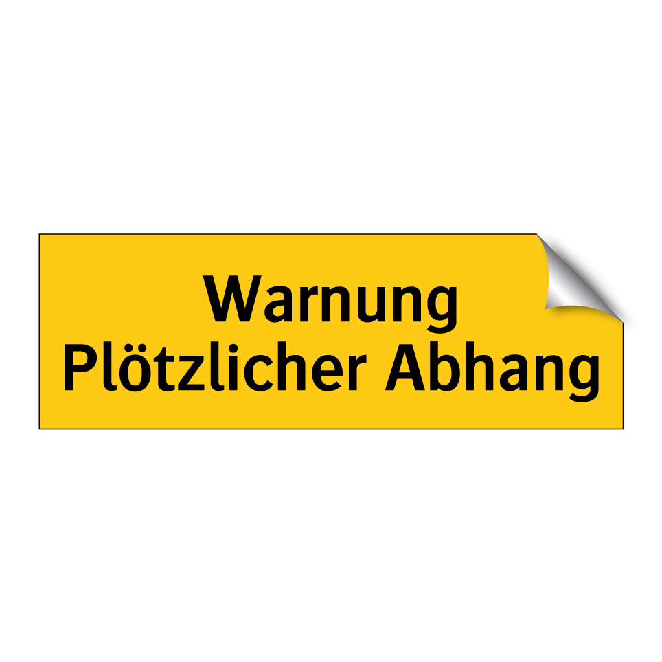 Warnschild mit dem Text Warnung Plötzlicher Abhang