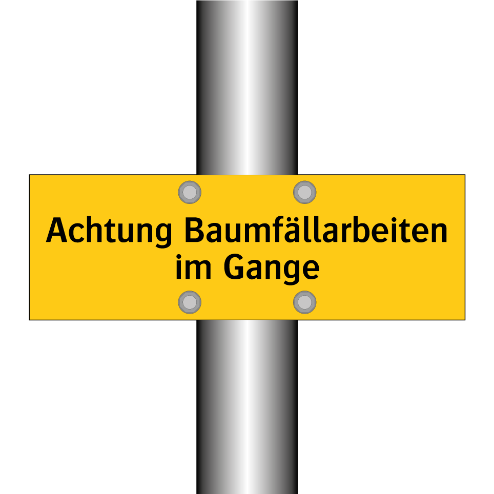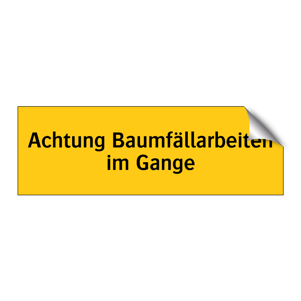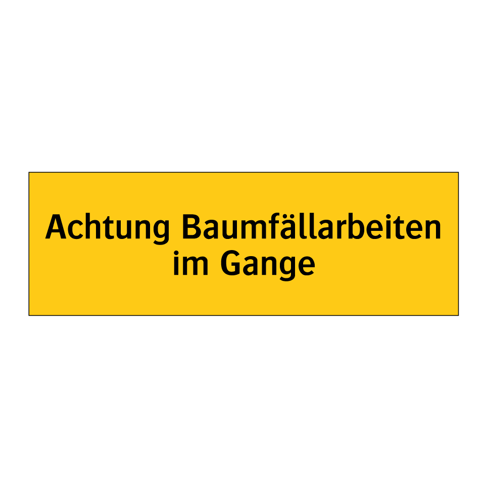 Warnschild mit dem Text Achtung Baumfällarbeiten im Gange