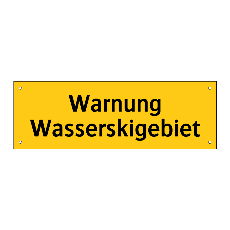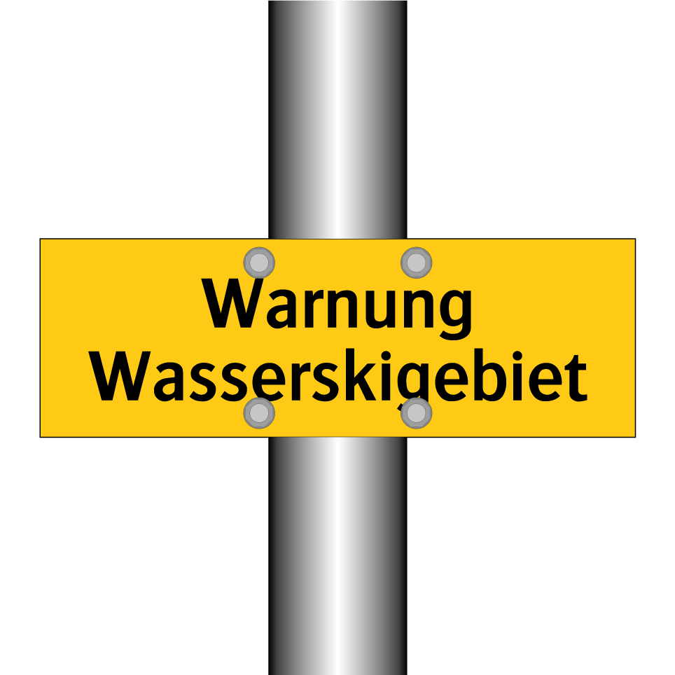 Warnschild mit dem Text Warnung Wasserskigebiet