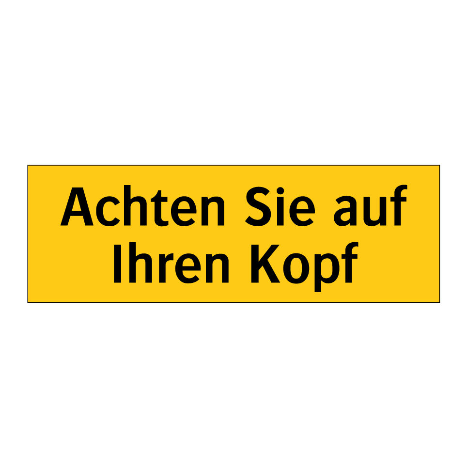 Warnschild mit dem Text Achten Sie auf Ihren Kopf