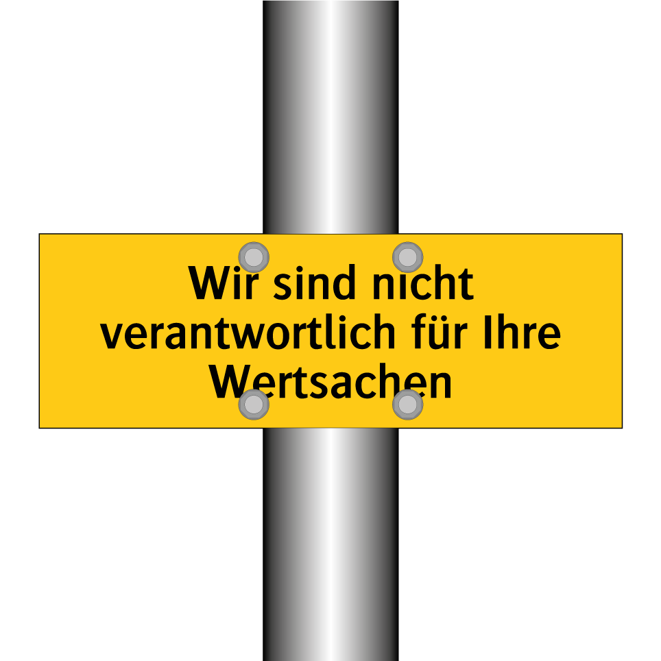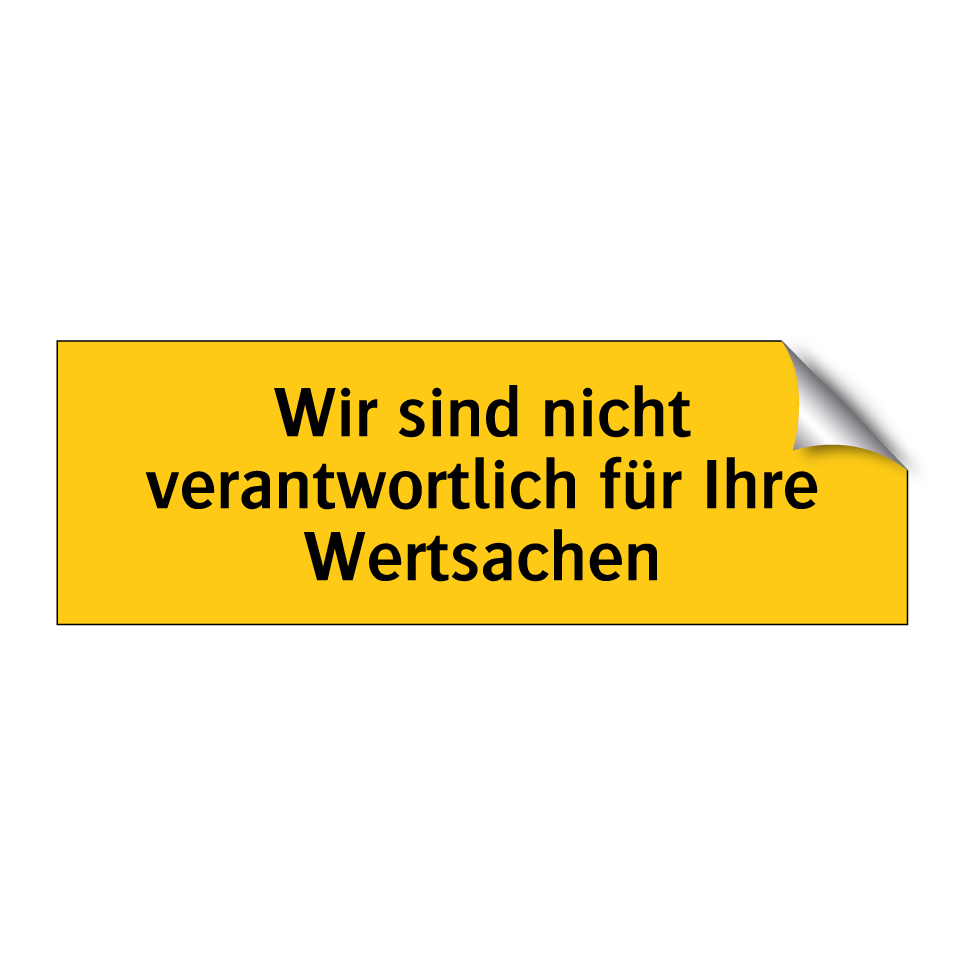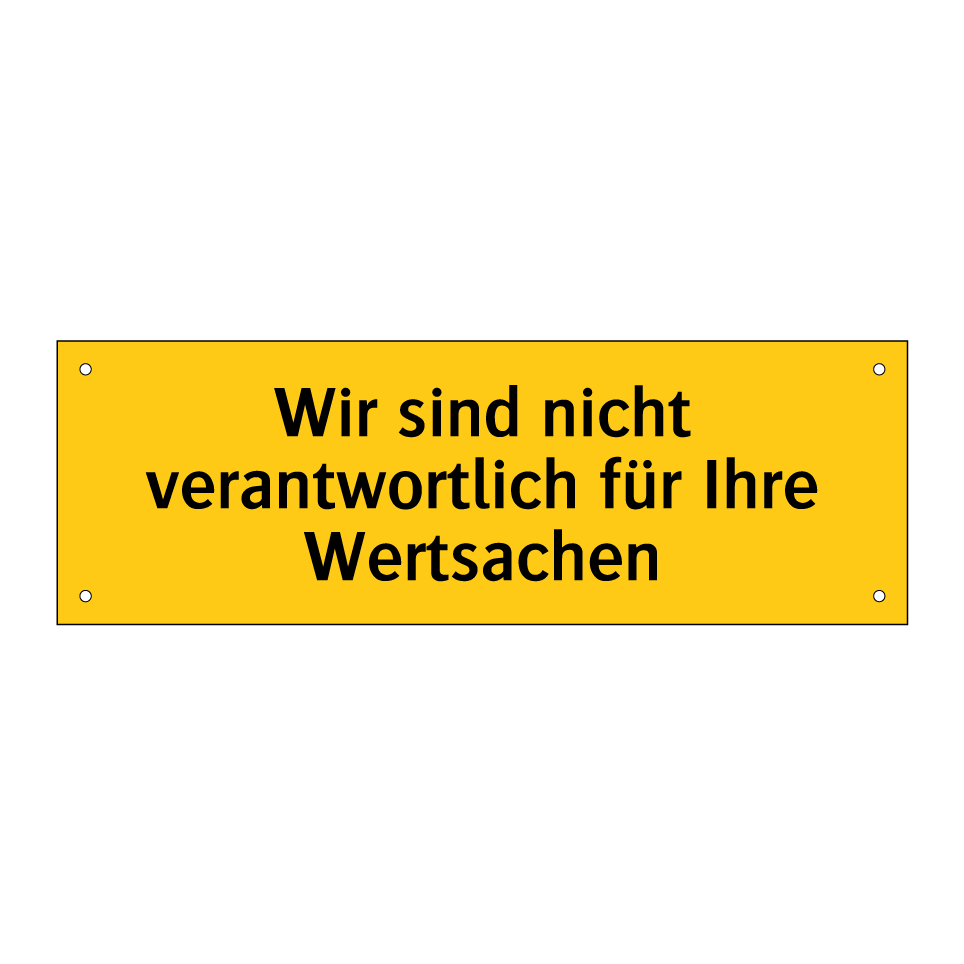 Warnschild mit dem Text Wir sind nicht verantwortlich für Ihre Wertsachen