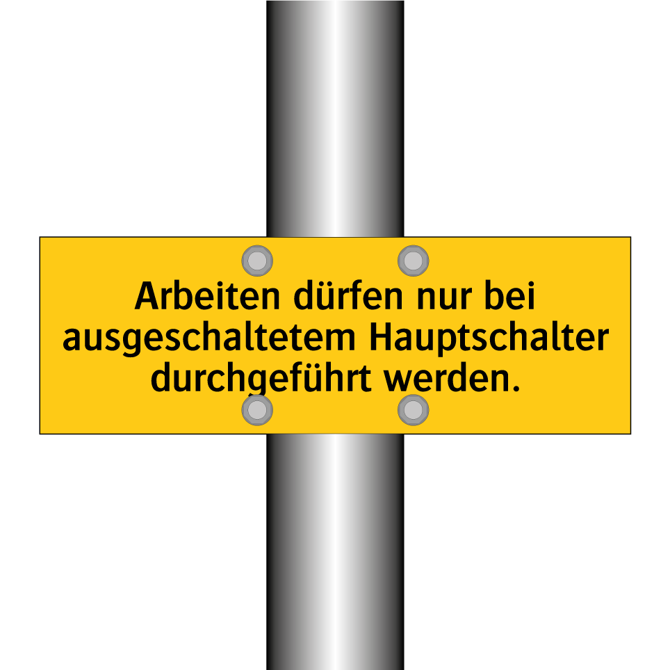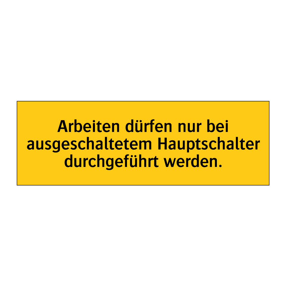 Warnschild mit dem Text Arbeiten dürfen nur bei ausgeschaltetem Hauptschalter durchgeführt werden.
