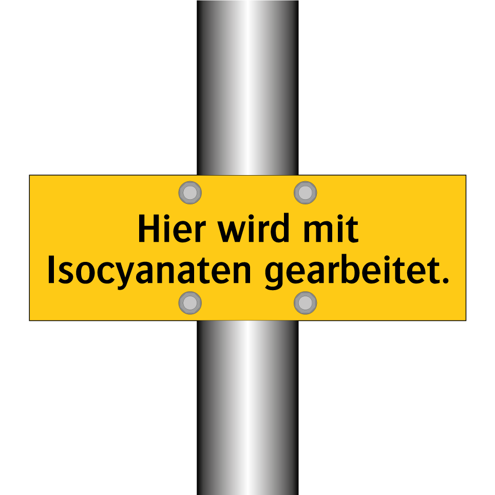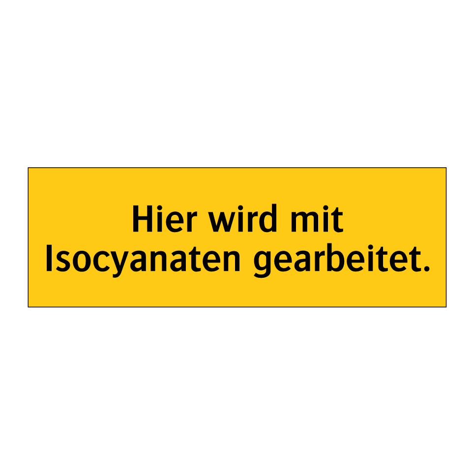 Warnschild mit dem Text Hier wird mit Isocyanaten gearbeitet.