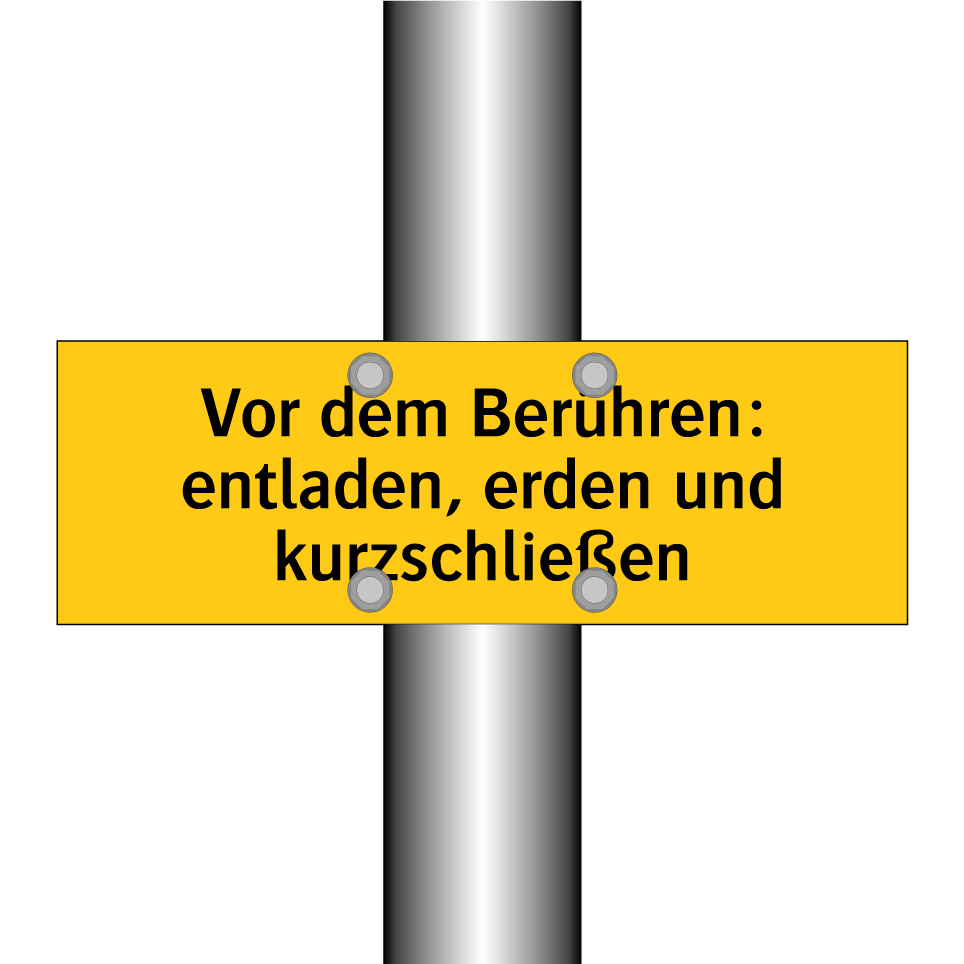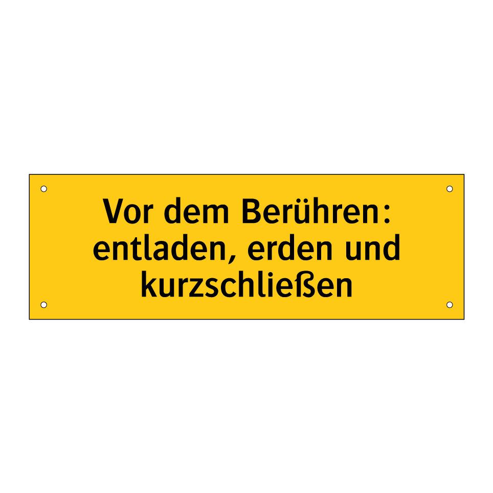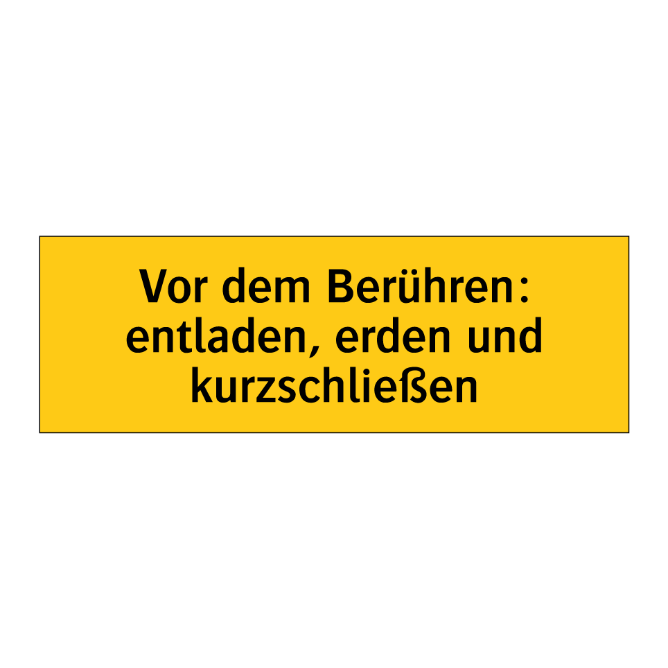 Warnschild mit dem Text Vor dem Berühren: entladen, erden und kurzschließen
