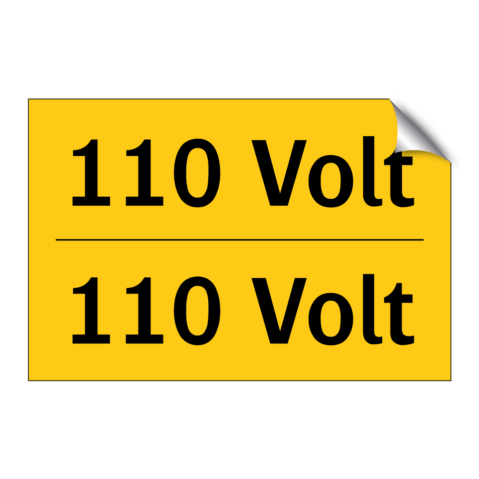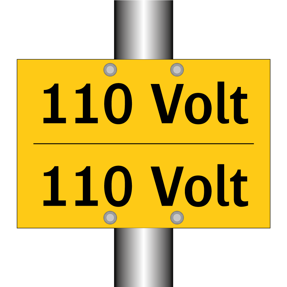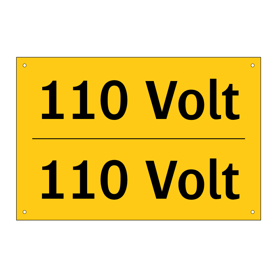 Zweisprachiges Warnschild mit deutschem Text 110 Volt und englischem Text 110 Volt