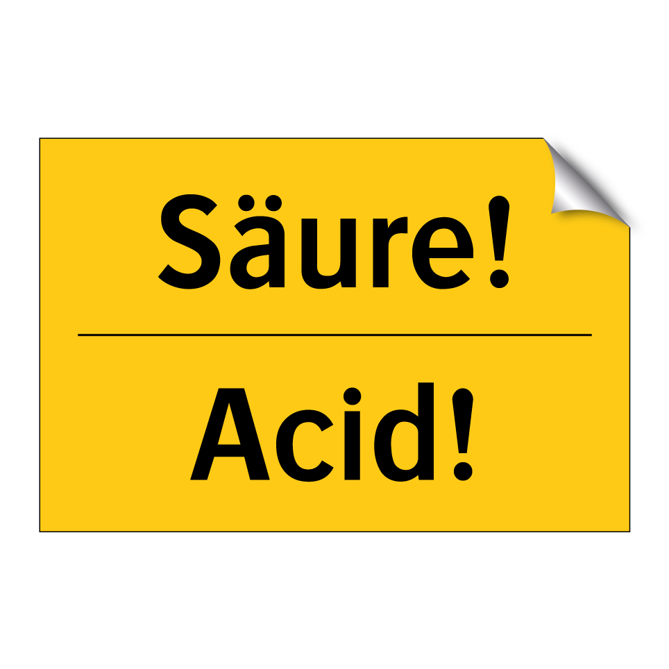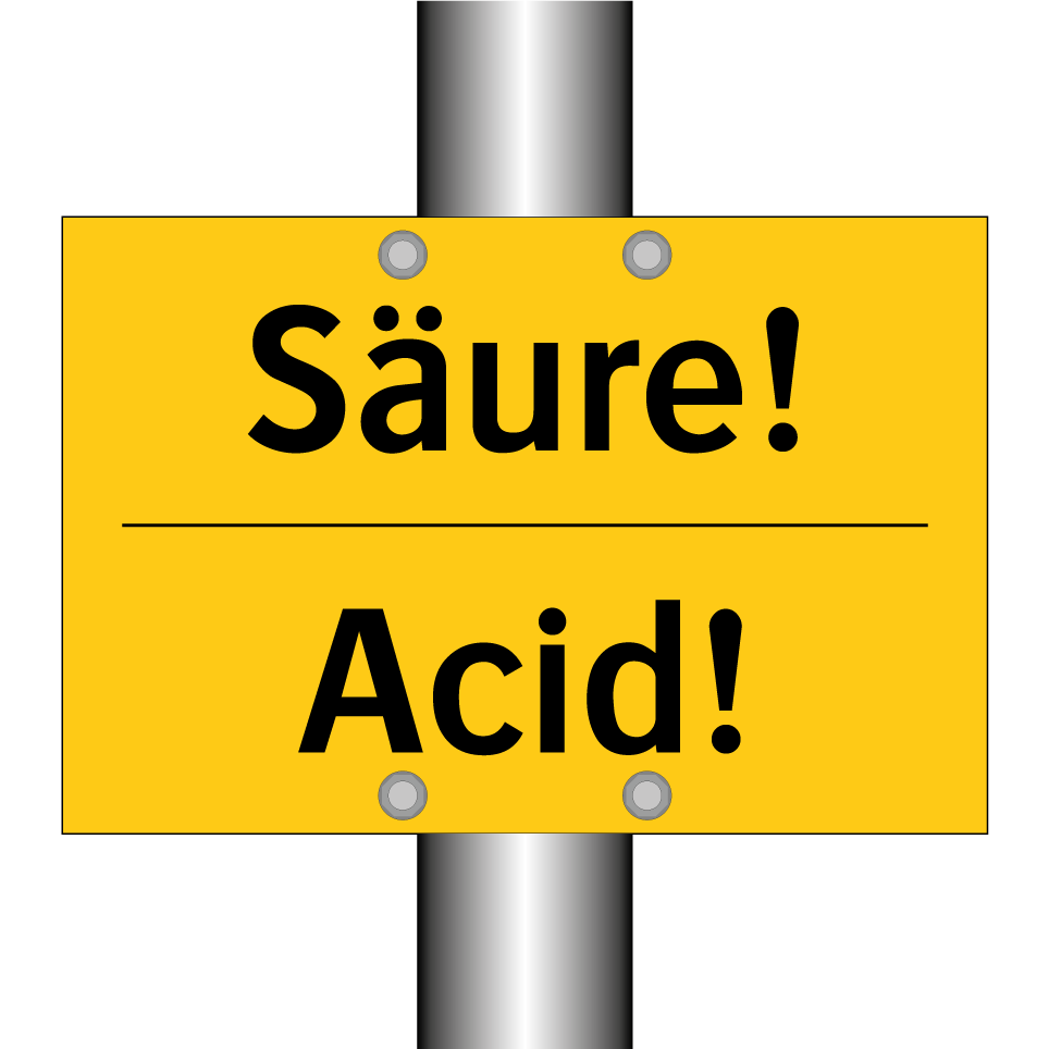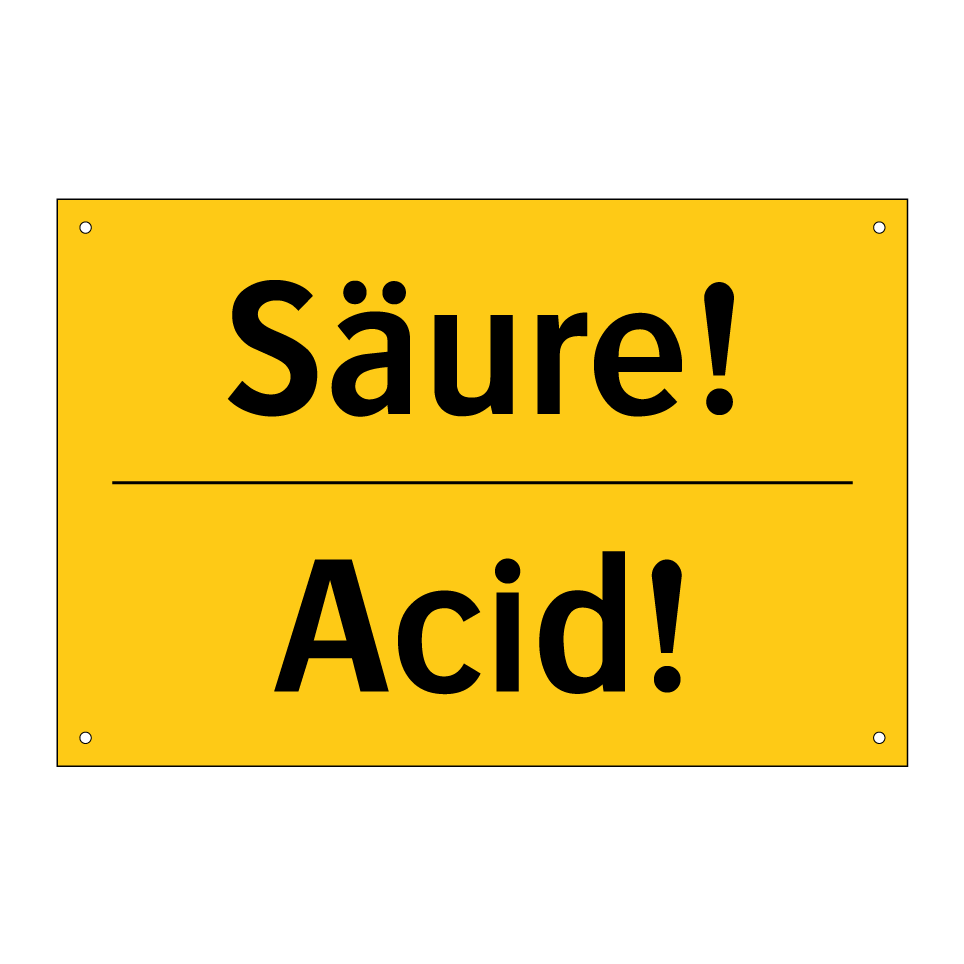 Zweisprachiges Warnschild mit deutschem Text Säure! und englischem Text Acid!