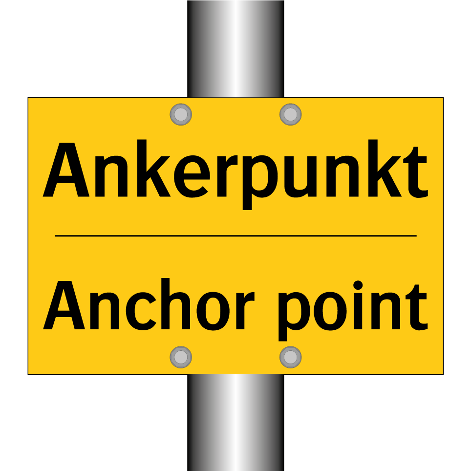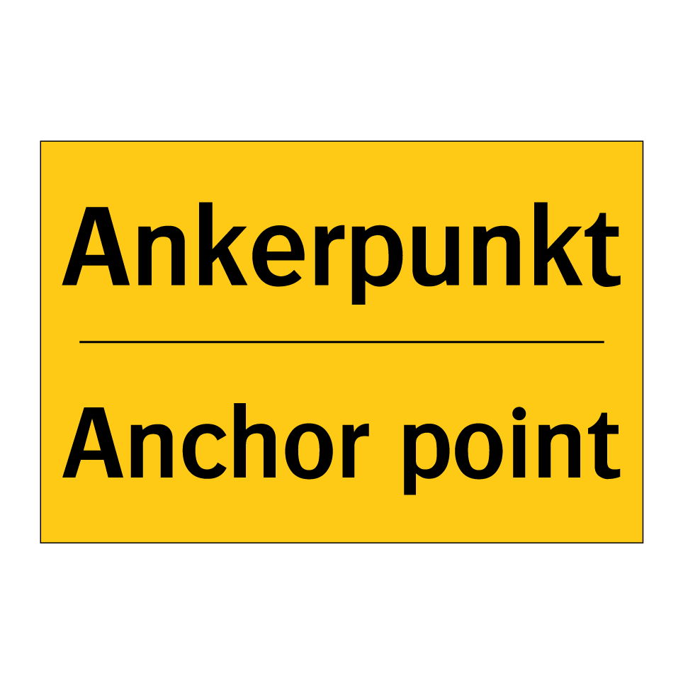 Zweisprachiges Warnschild mit deutschem Text Ankerpunkt und englischem Text Anchor point